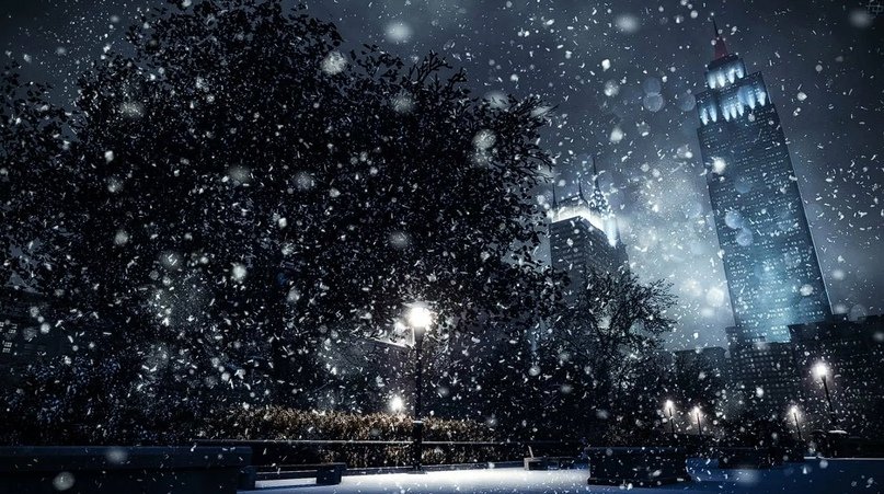 Снегопад ночью в городе
