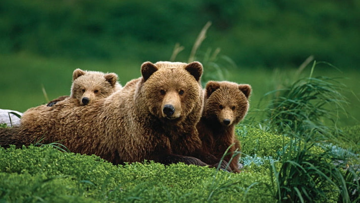 Бурый медведь с медвежатами