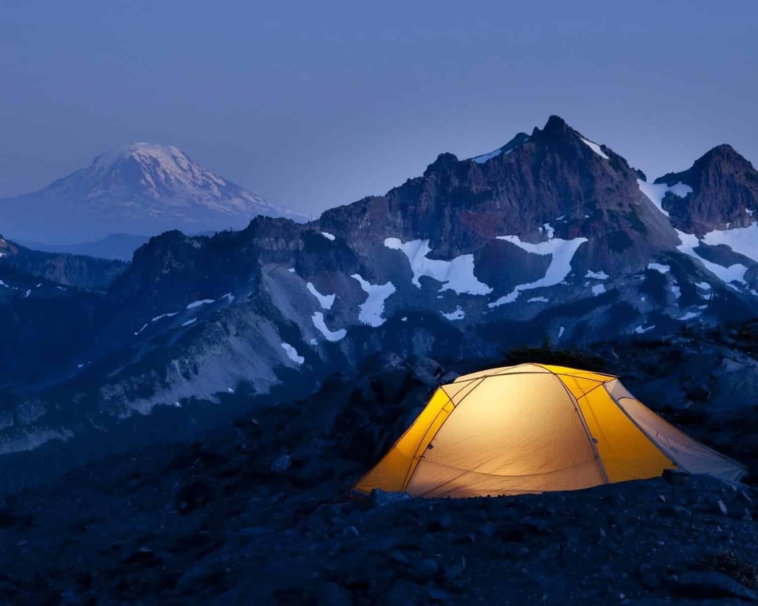 Палатка в горах ночью