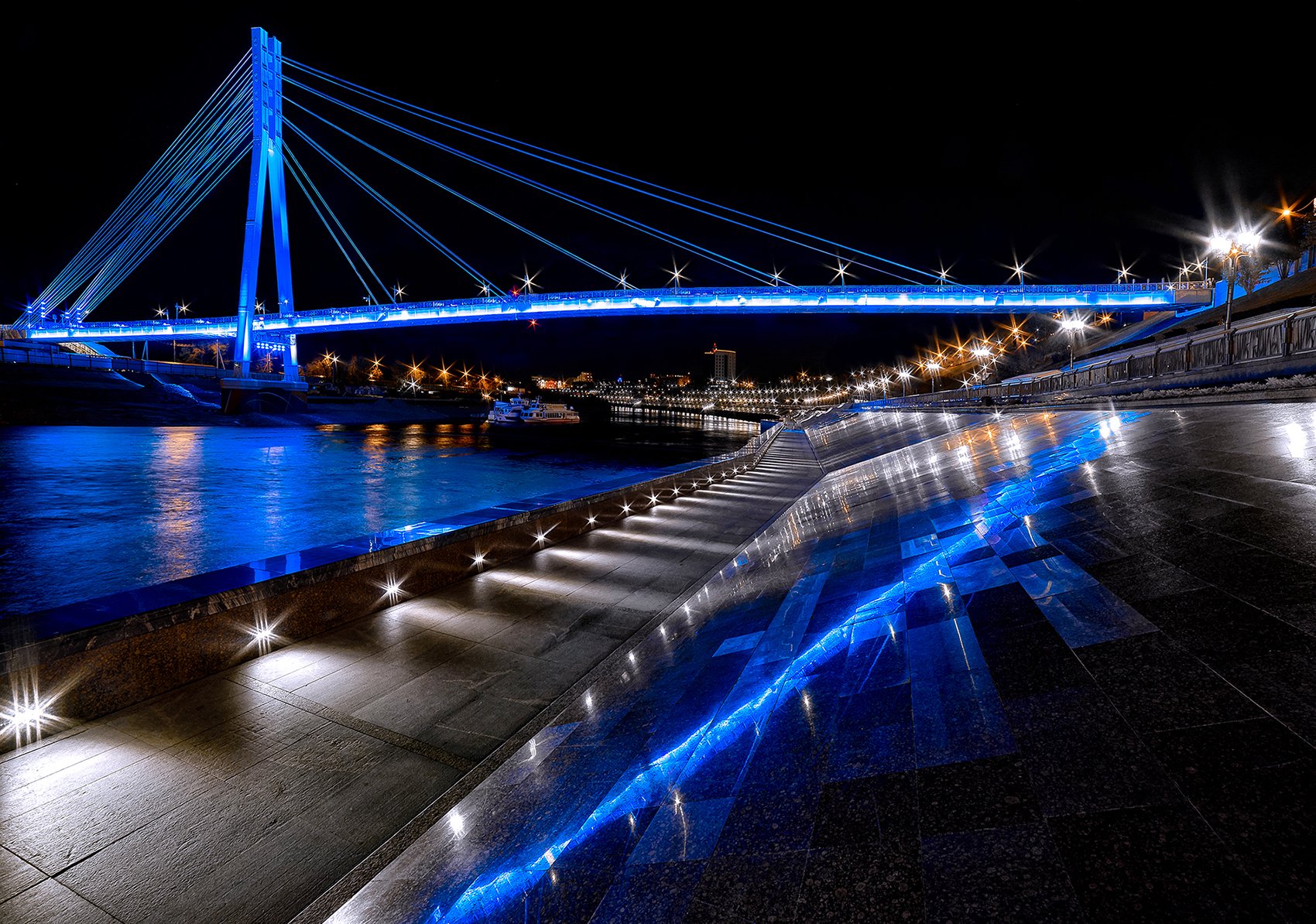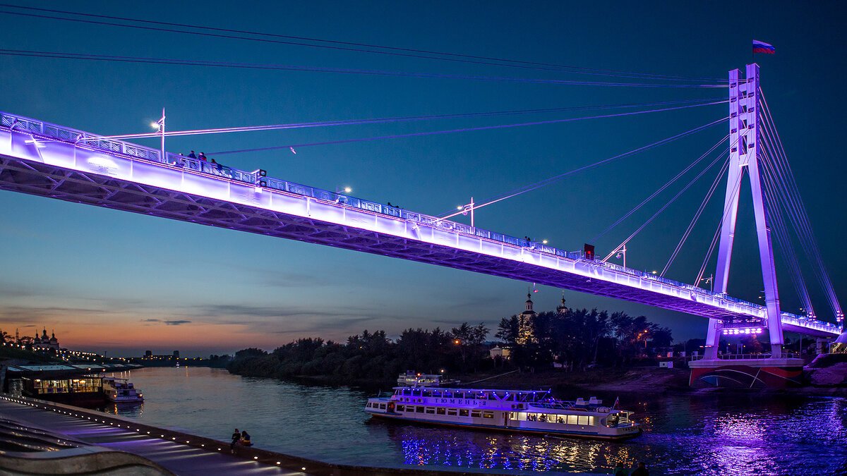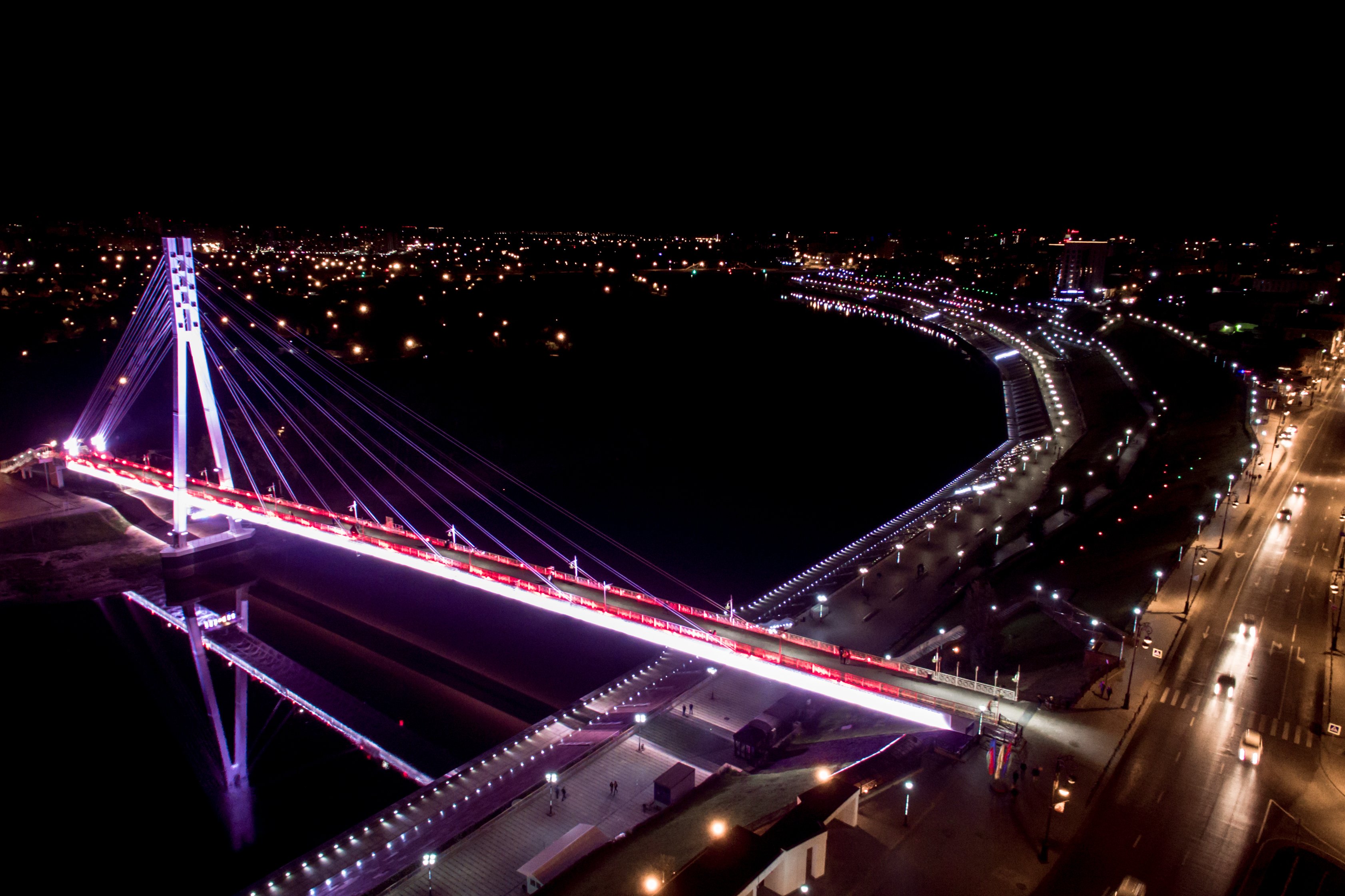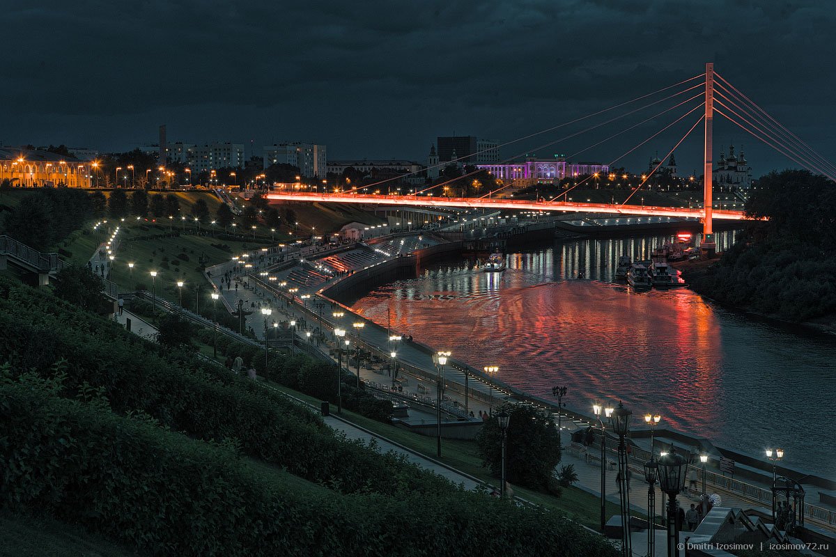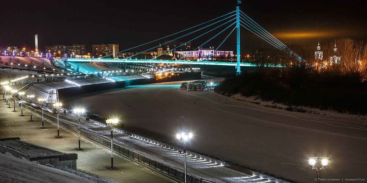 Ночная Тюмень набережная мост влюбленных