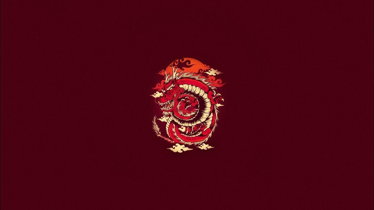 Красный дракон на черном фоне
