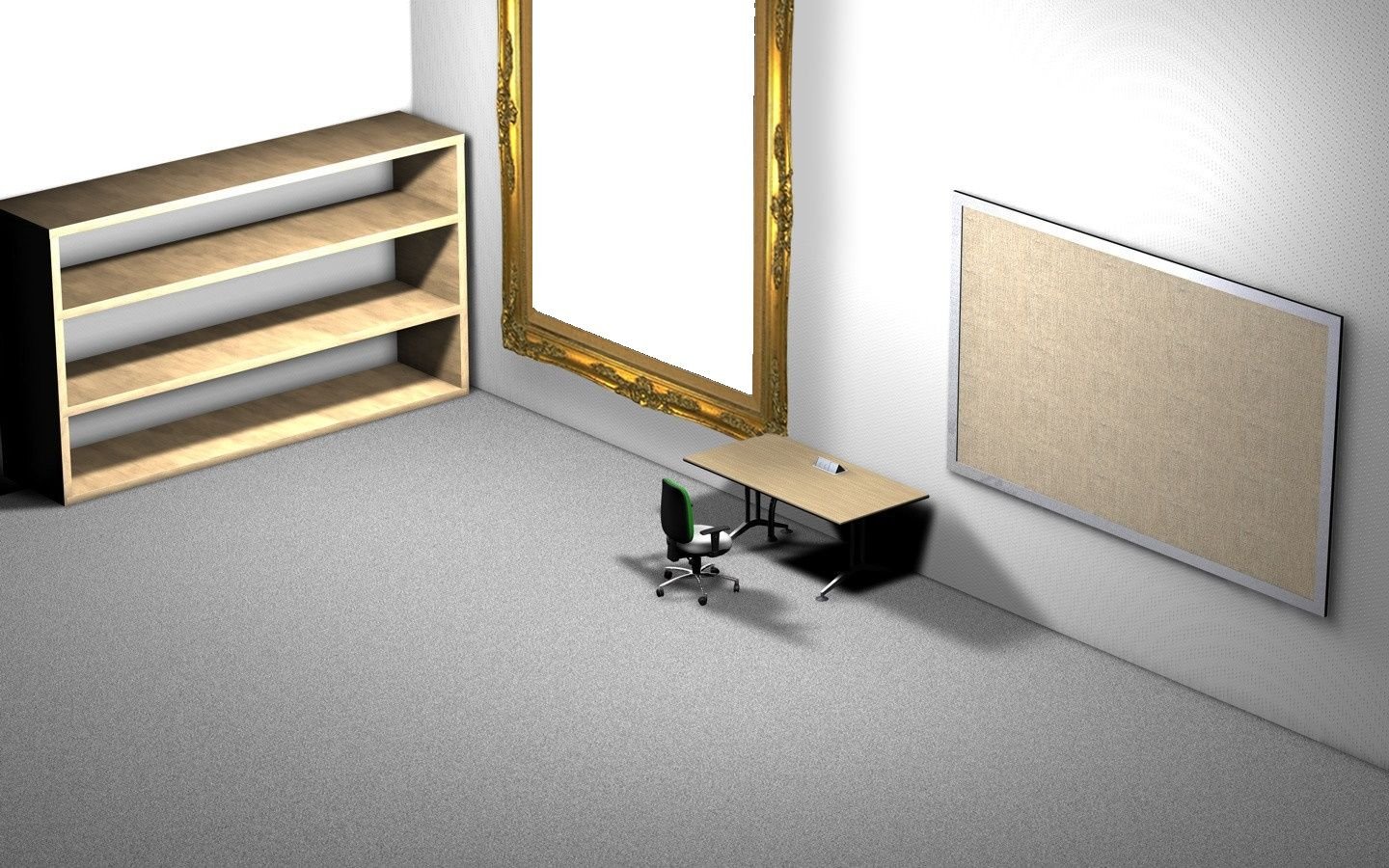 Рабочий стол в виде комнаты с полками
