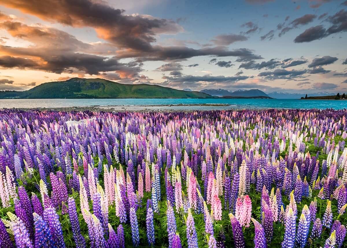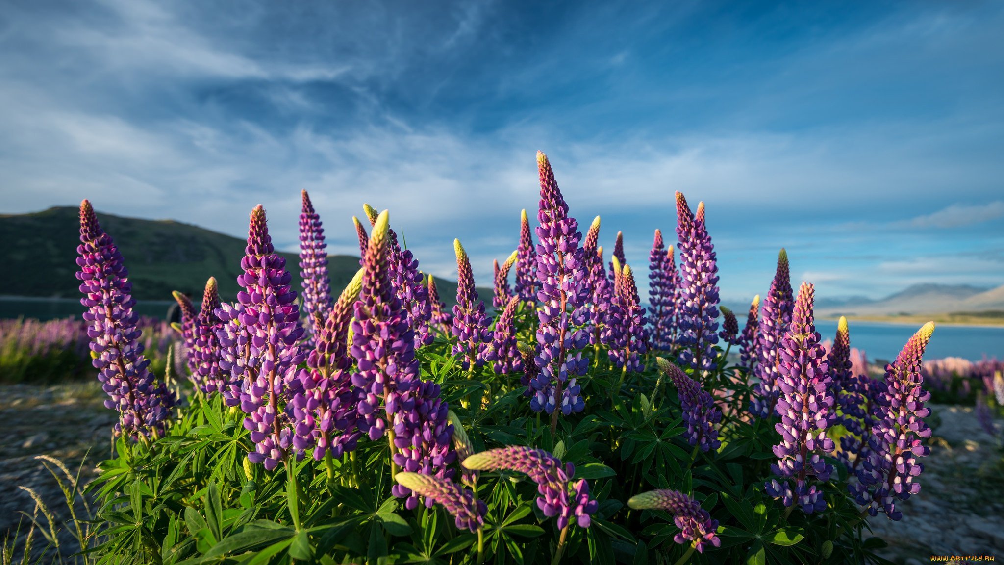 Люпины на озере Текапо новая Зеландия