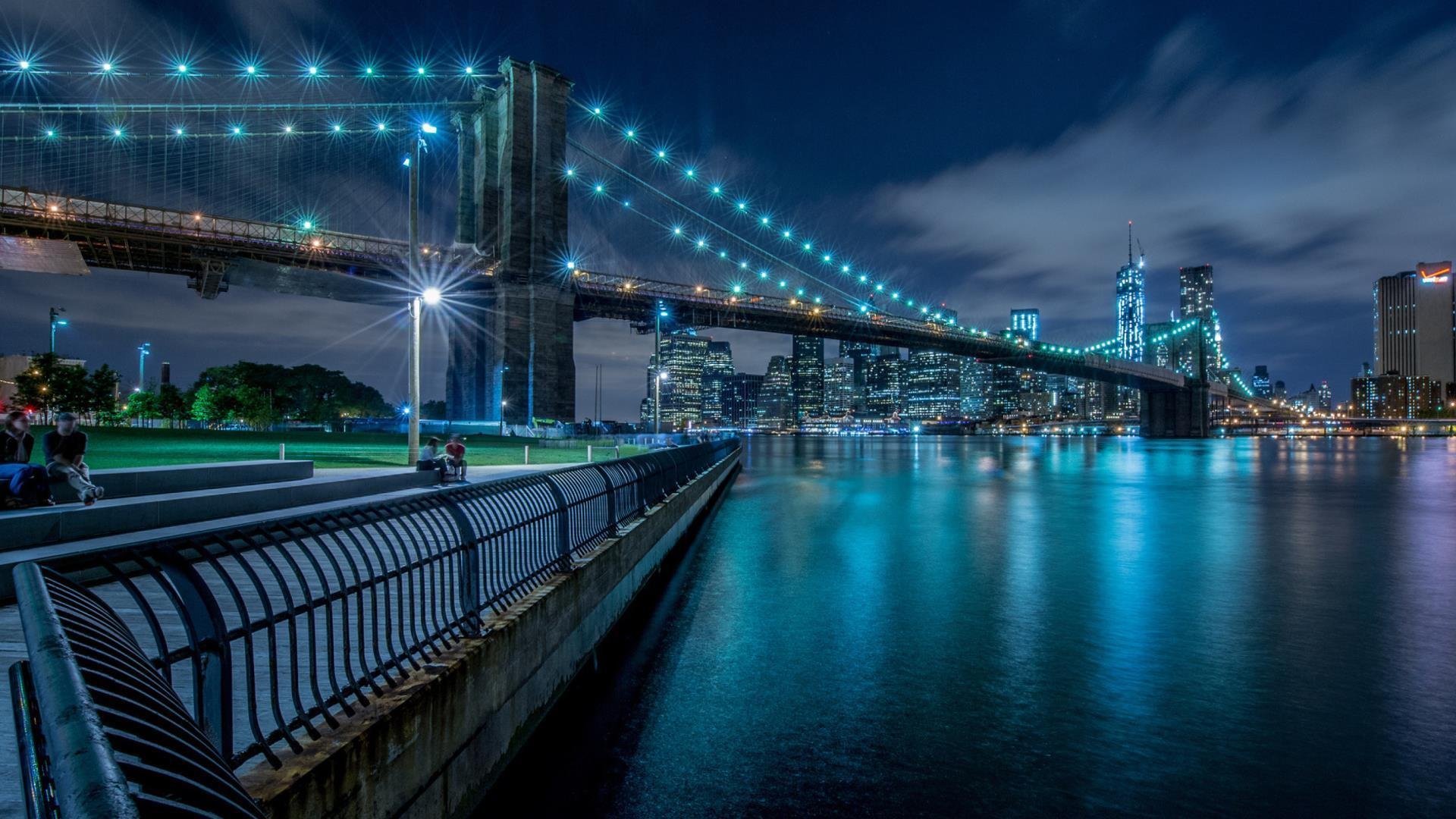 Манхэттен мост Нью-Йорк ночью