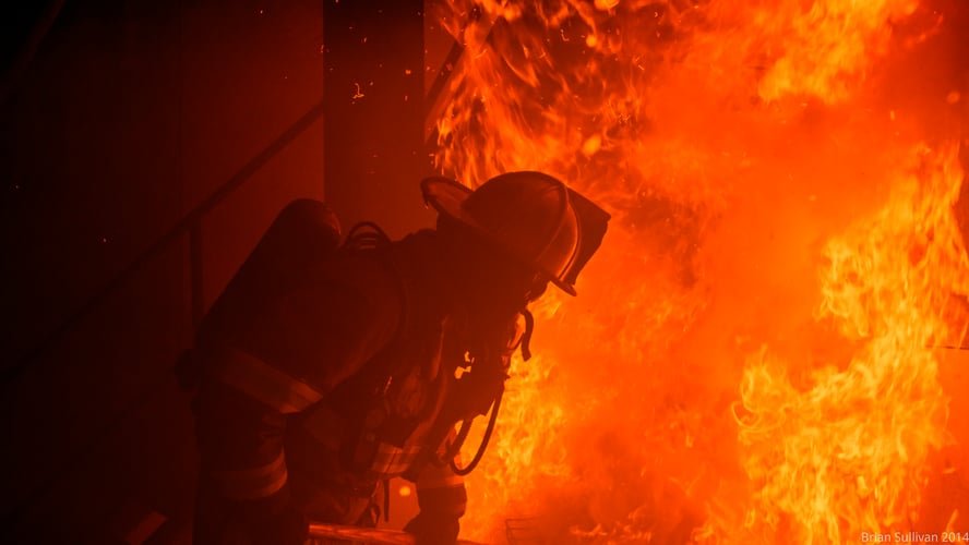Пожарный в огне