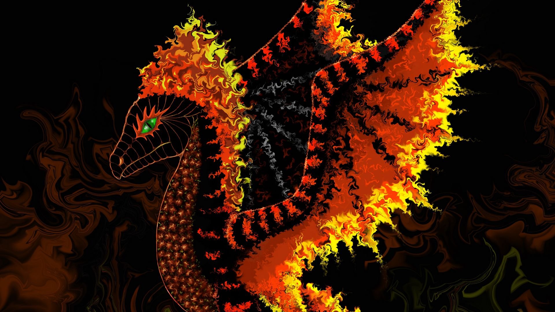 Огненный дракон на черном фоне