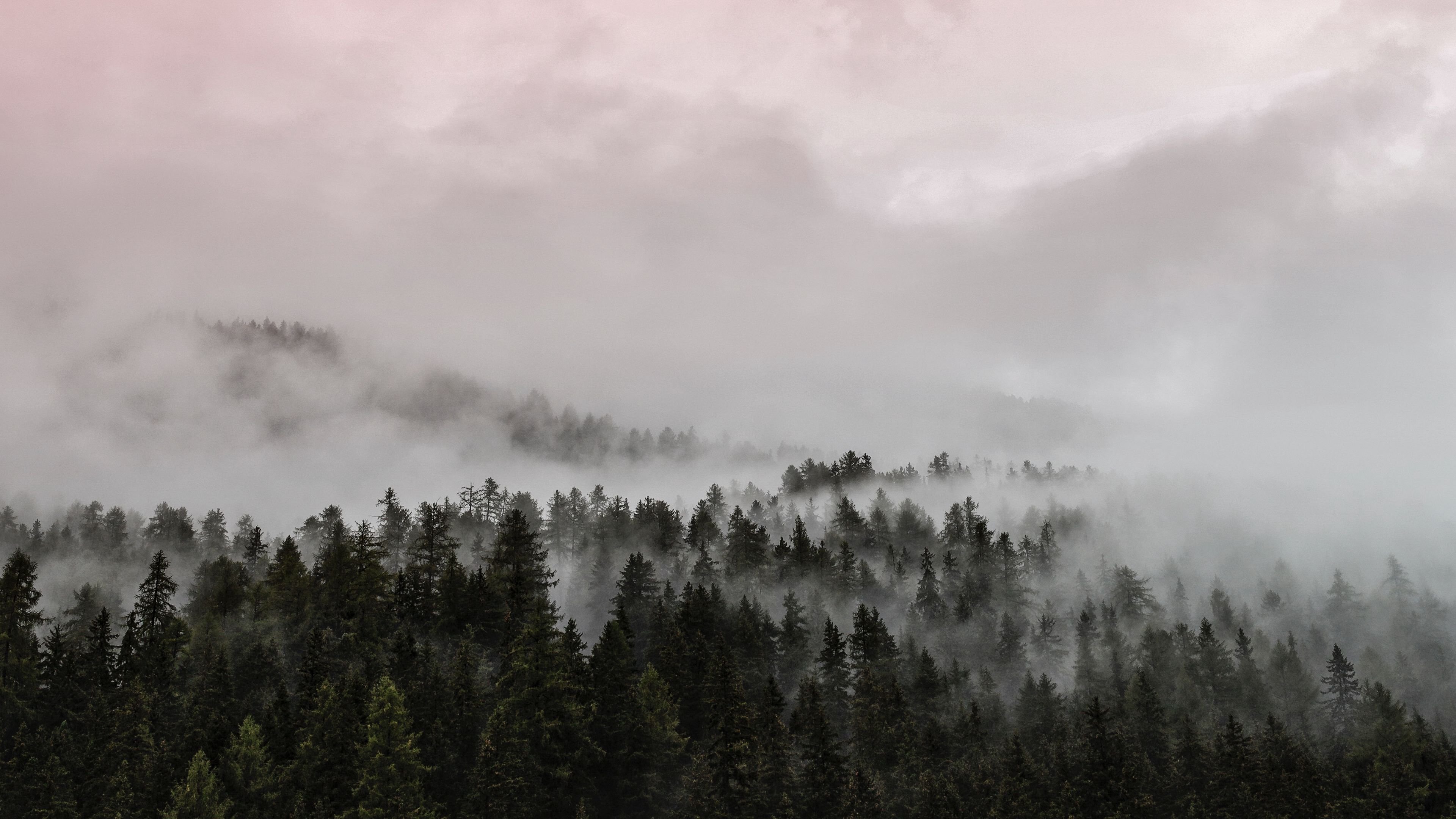 Хвойный лес в тумане