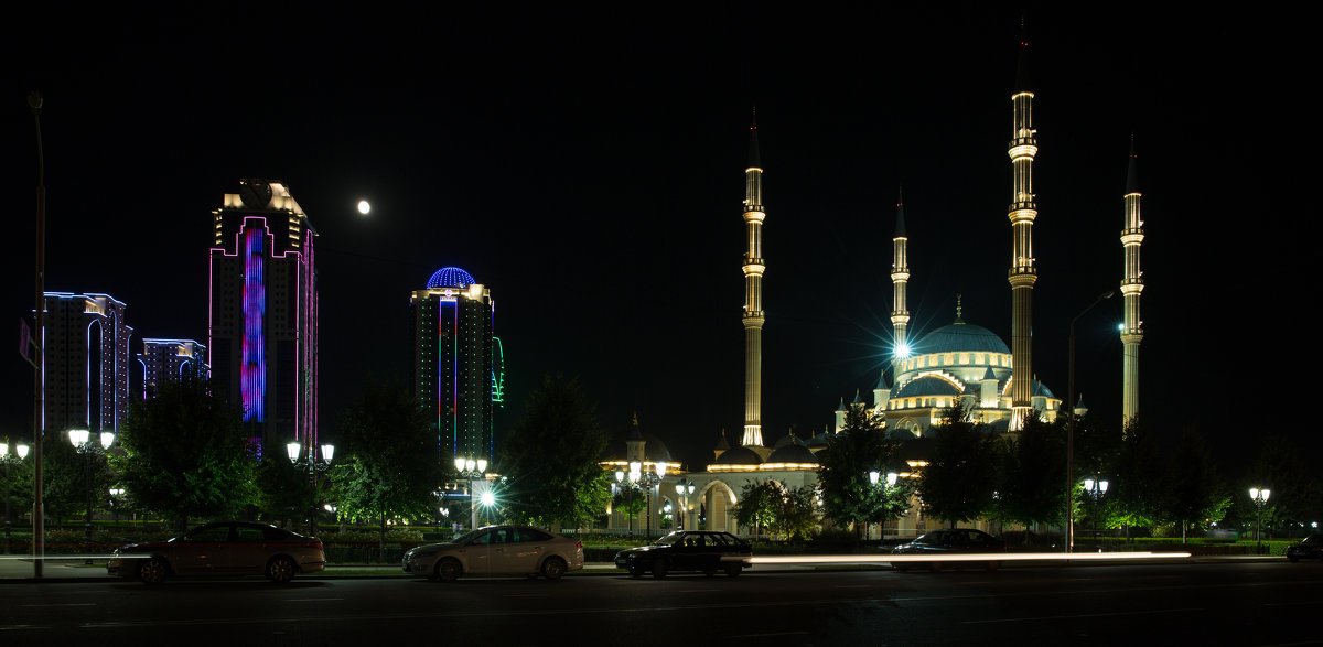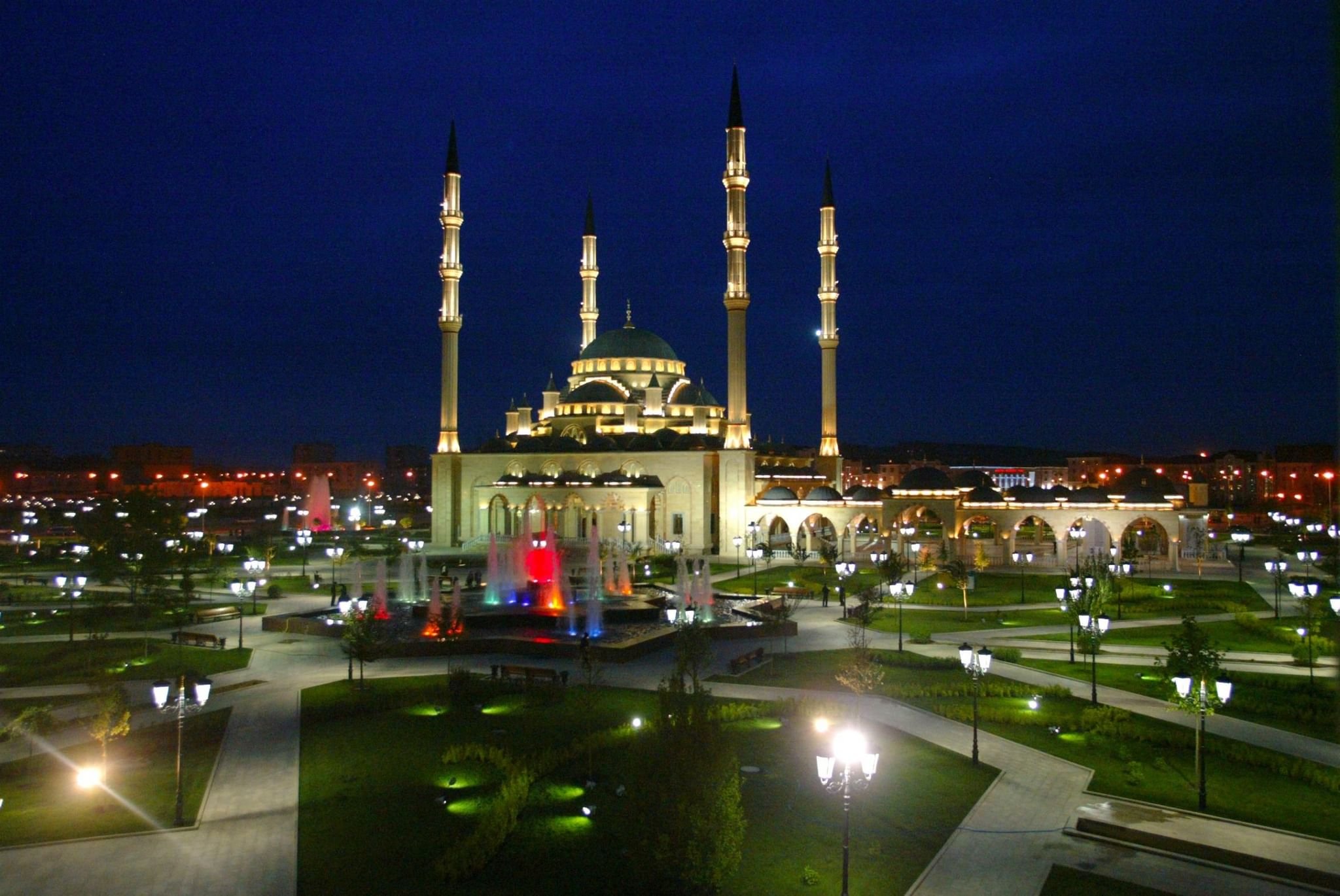 Мечеть сердце Чечни ночью