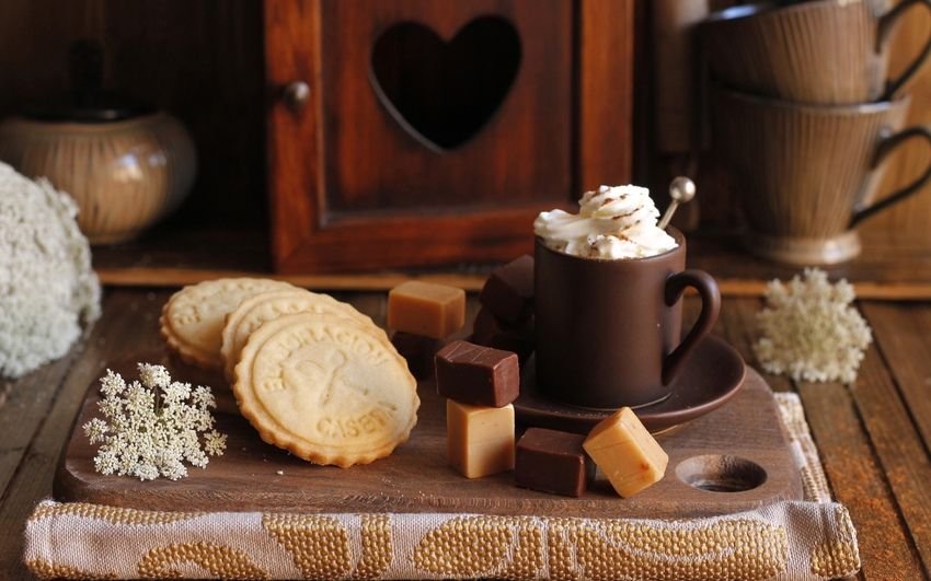 Какао в чашке и печенье