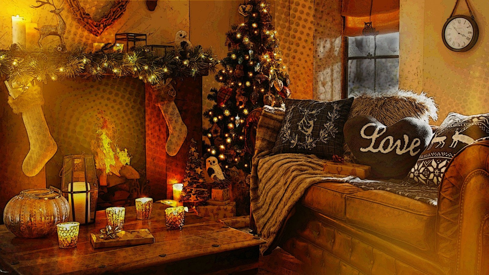 Новогодняя комната с камином