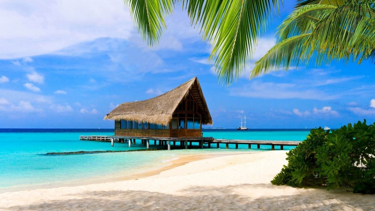 Мальдивы песок пальмы бунгало