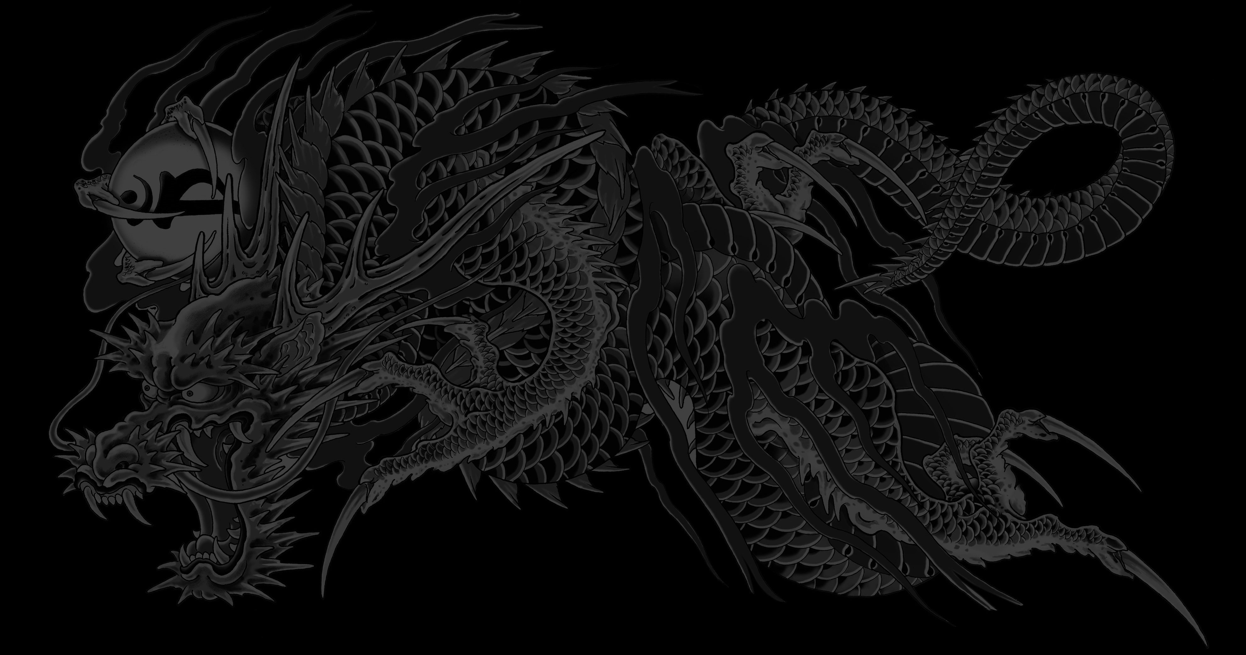 Белый дракон на черном фоне