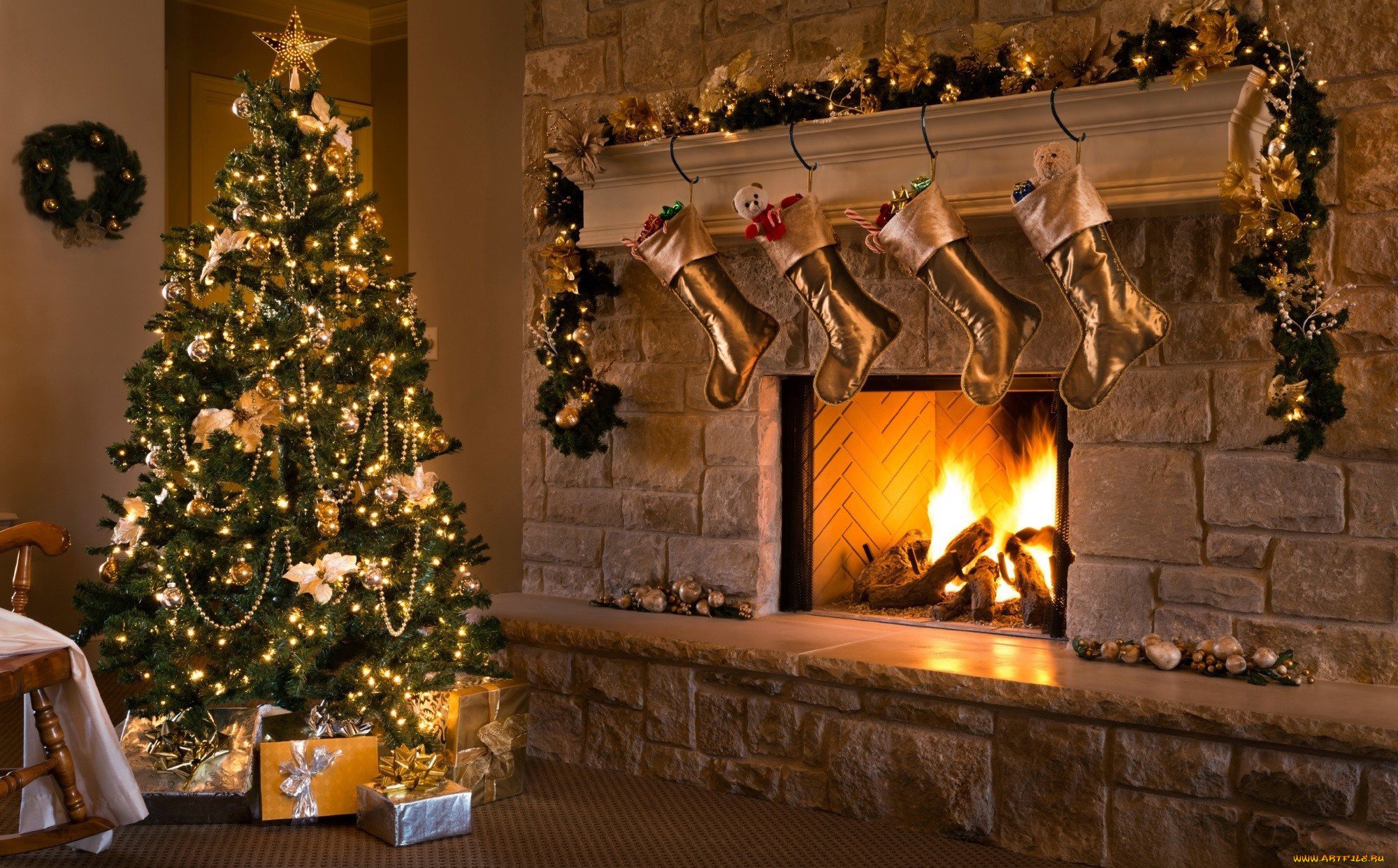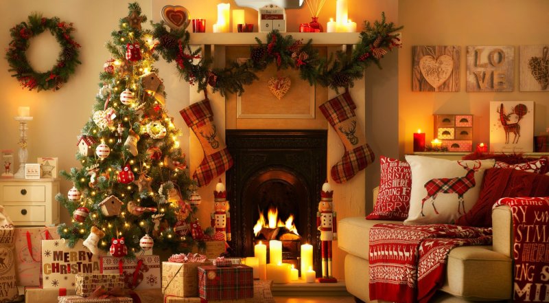 Новогодняя елка и камин