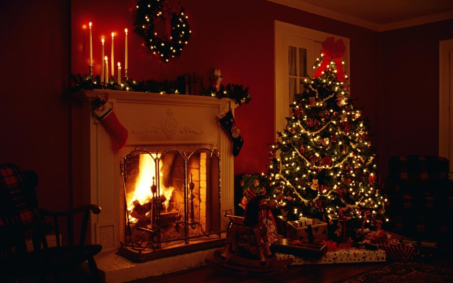 Новогодняя комната с камином