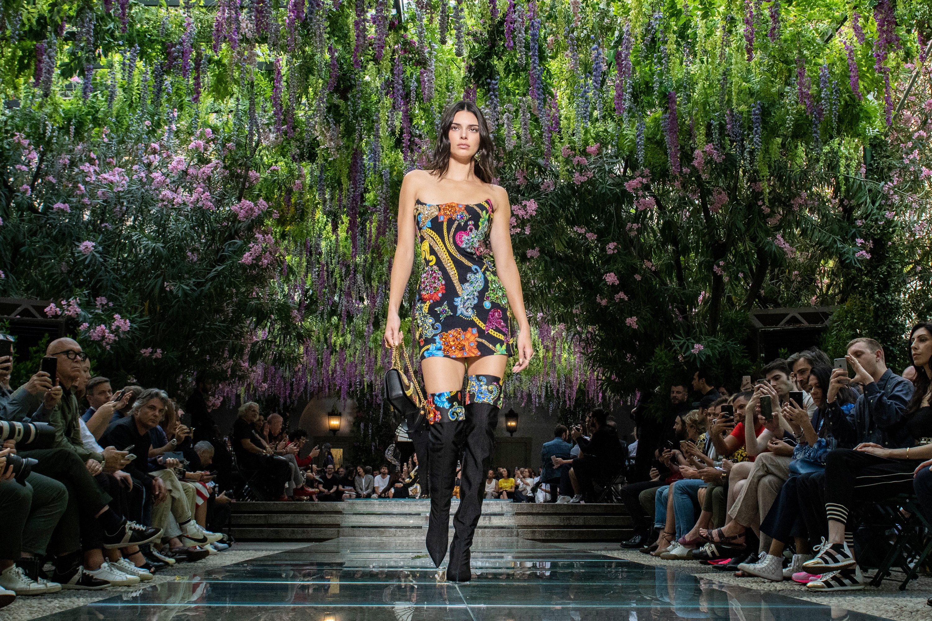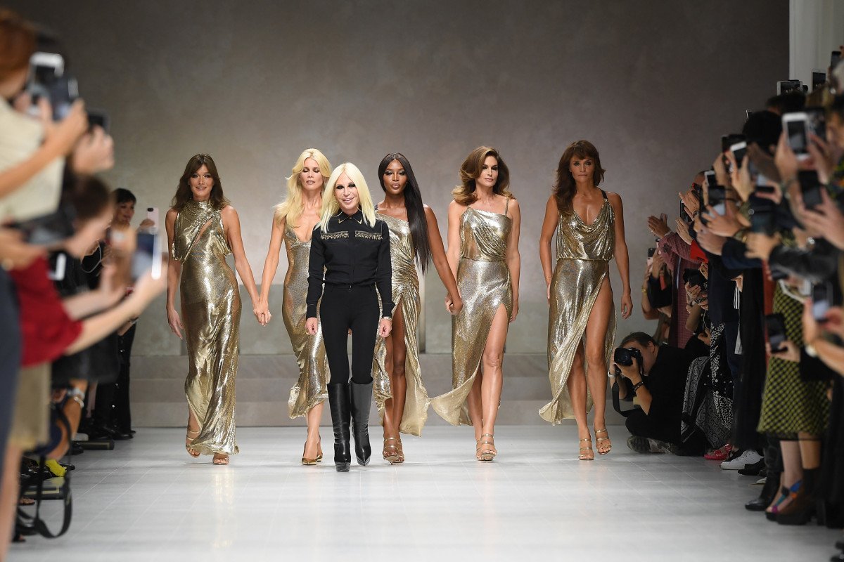 Донателла Версаче на подиуме с моделями