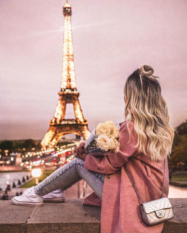 Девушка и Эйфелева башня