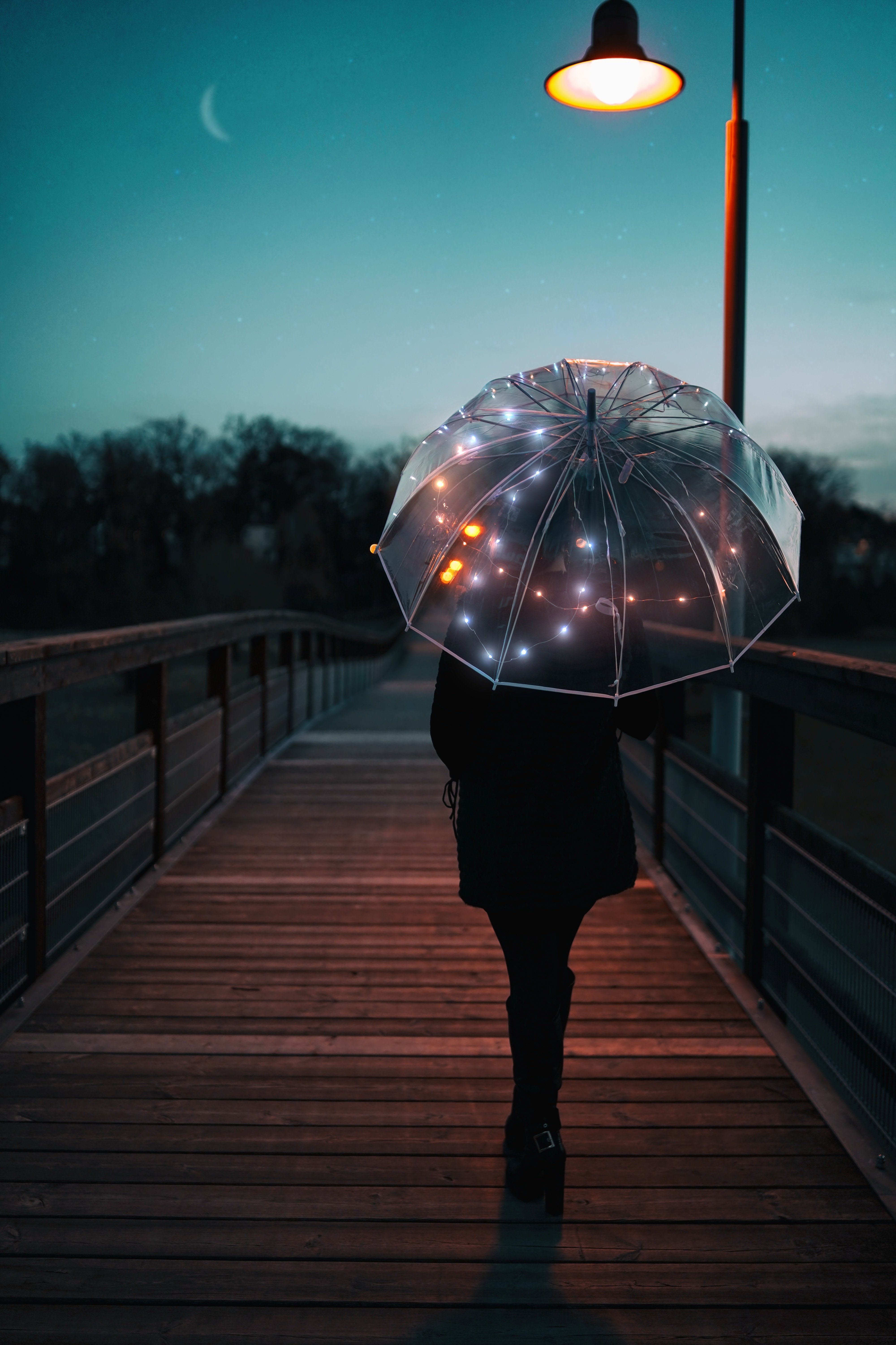 Девушка с зонтом ночью