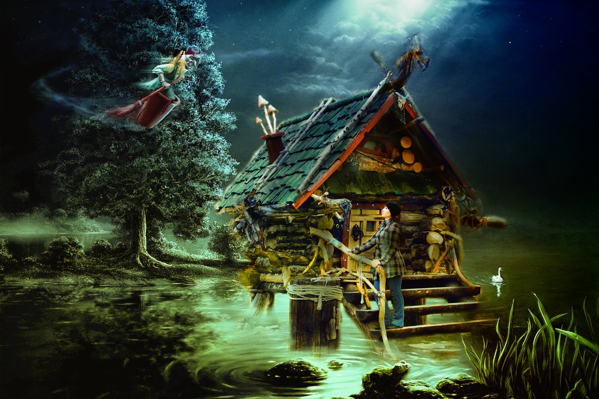 Сказочный лес с избушкой бабы яги