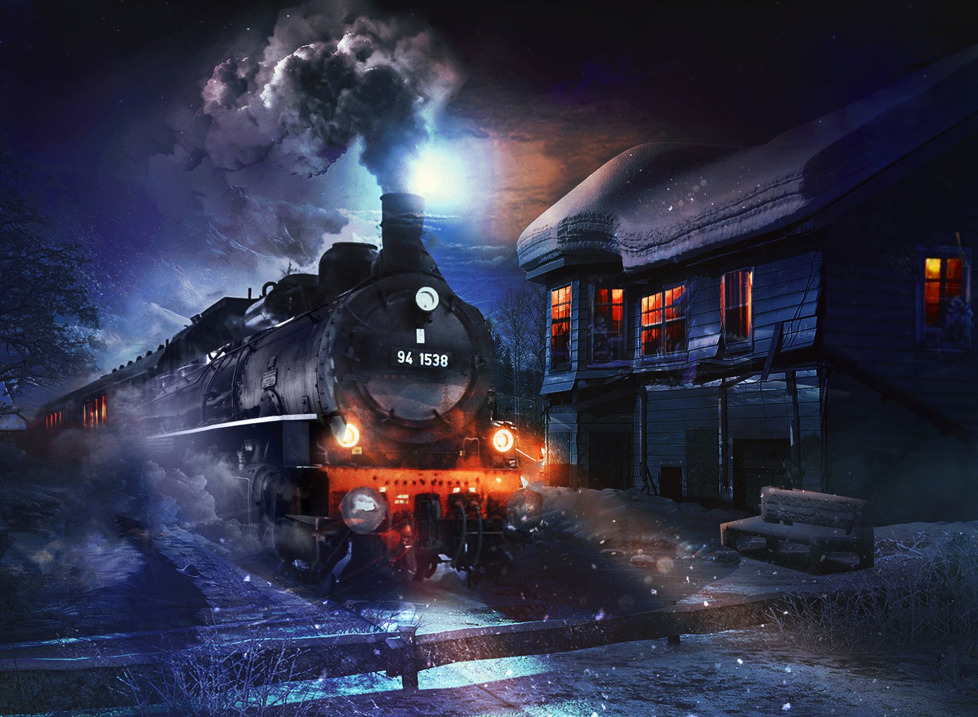 Поезд зимой ночью