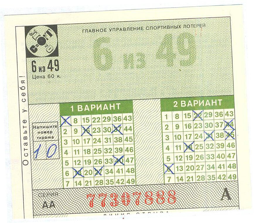 Лотерейный билет Спортлото