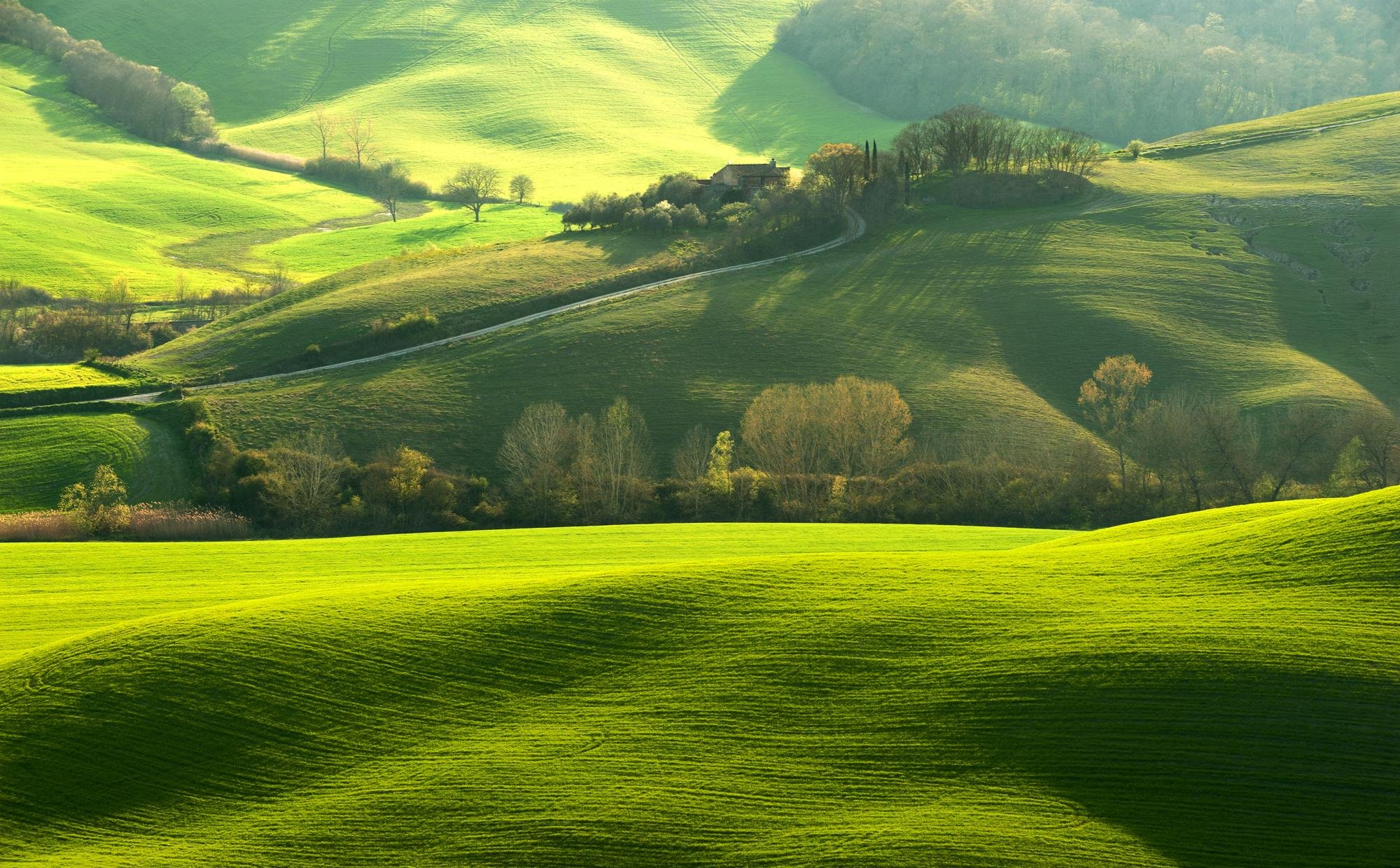 Италия, зеленые поля Тосканы