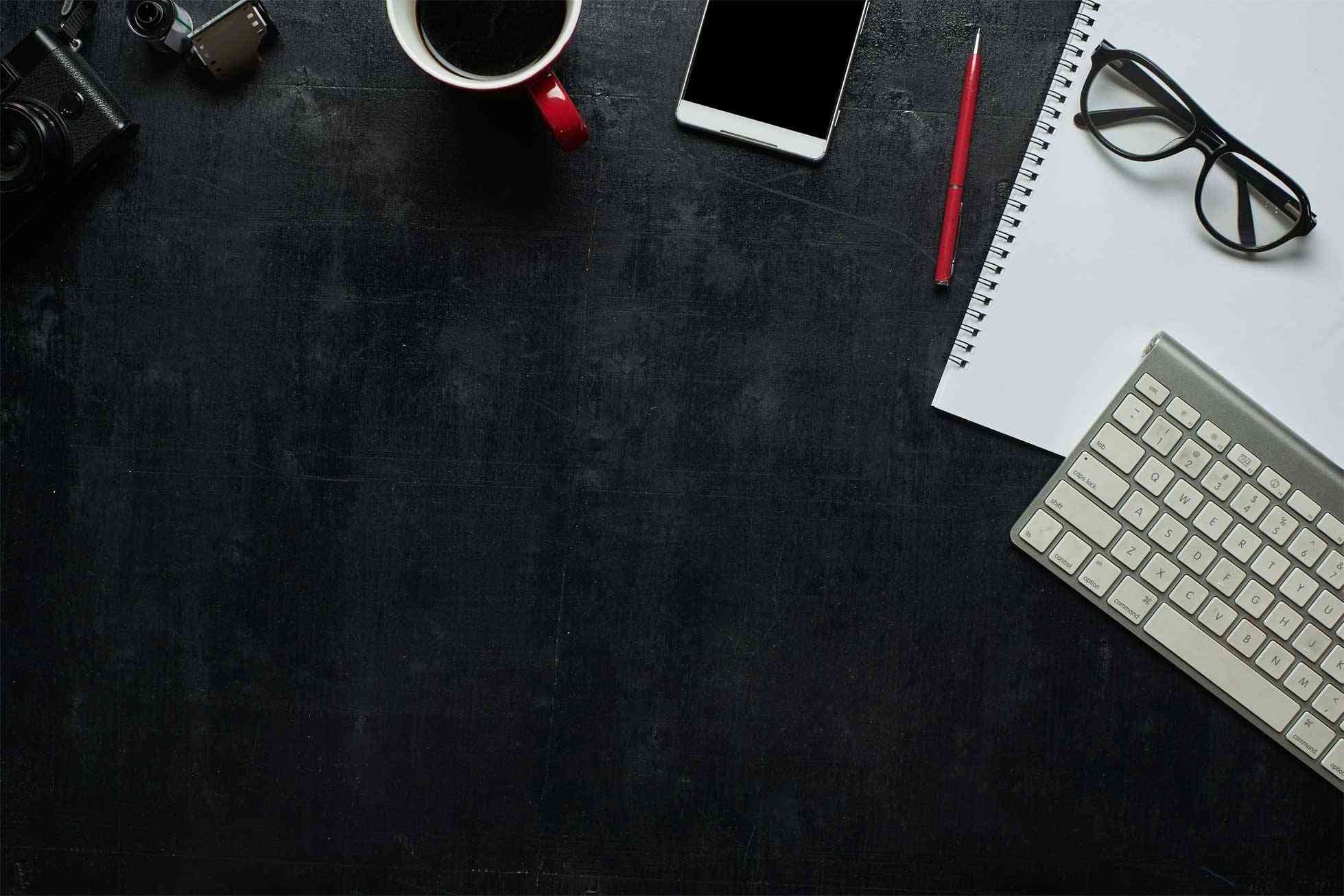 Черный офисный стол сверху