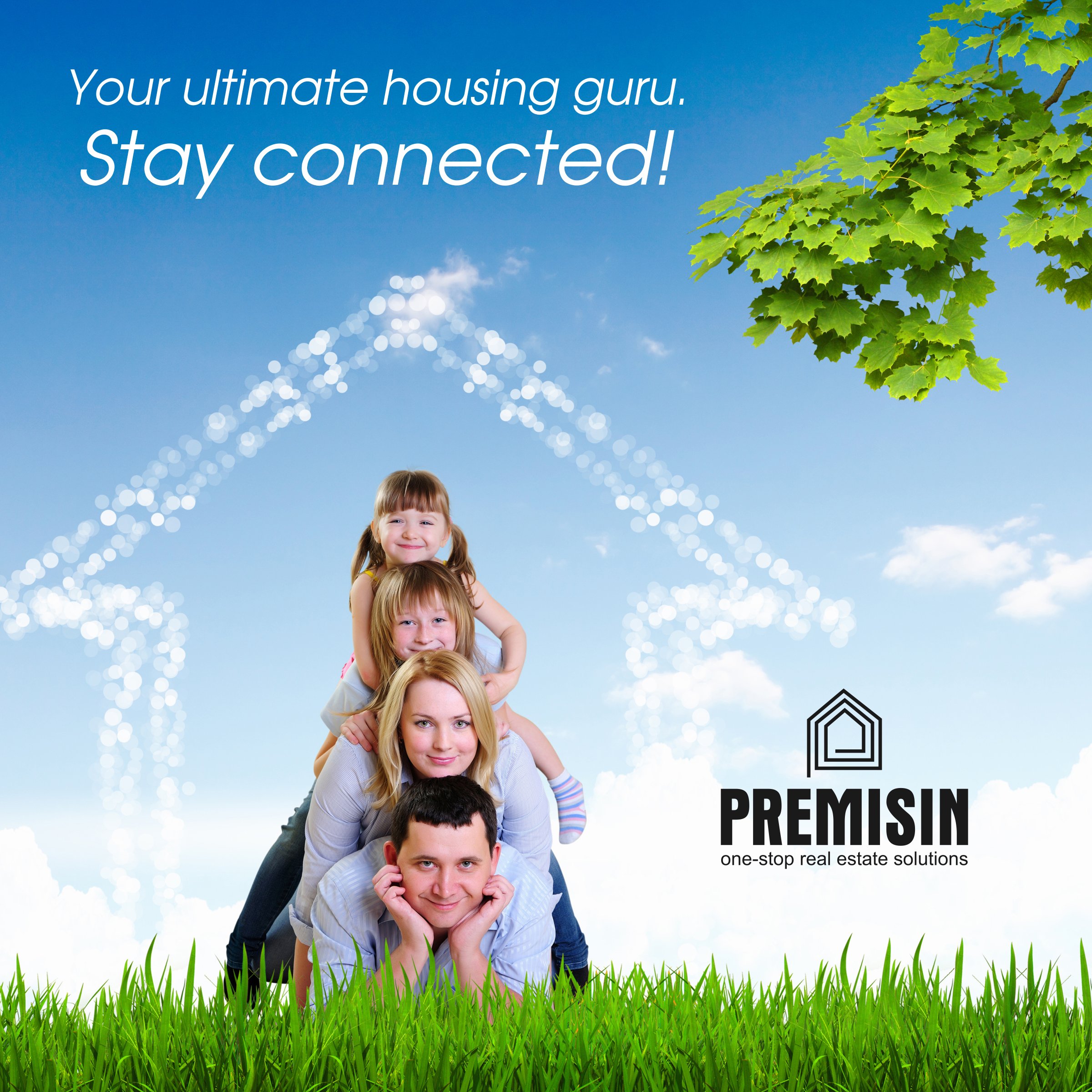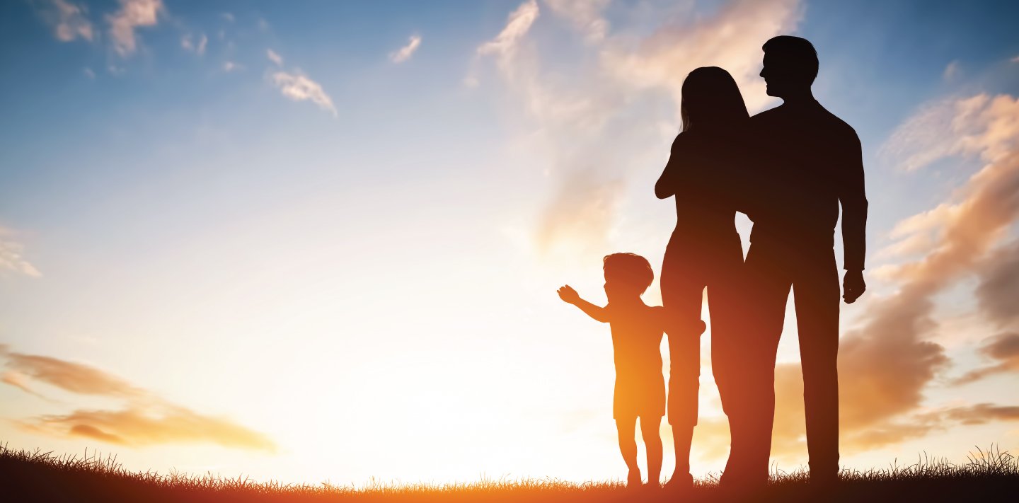 Счастливая семья на фоне неба