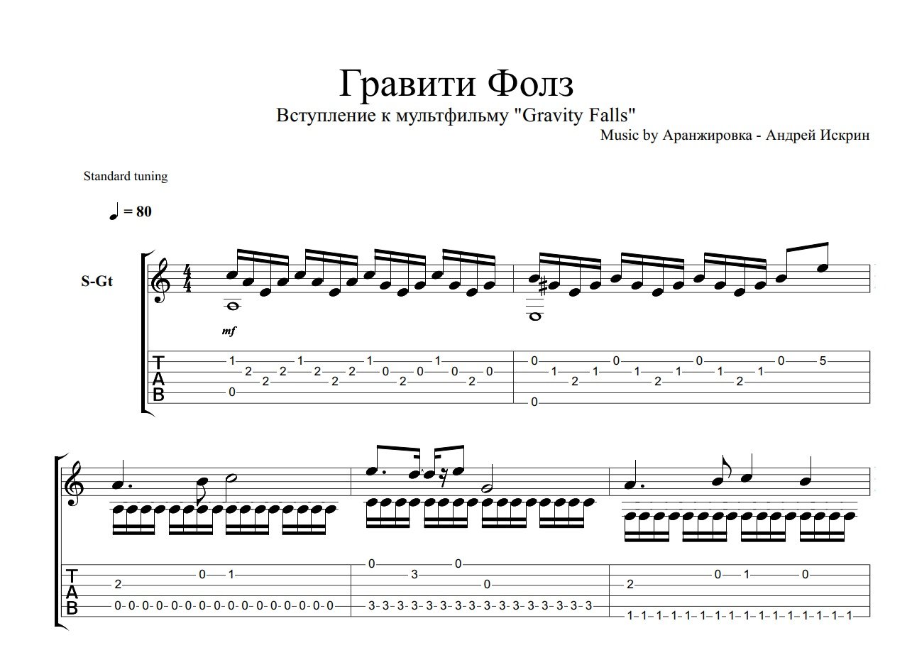 Ноты для гитары Гравити Фолз