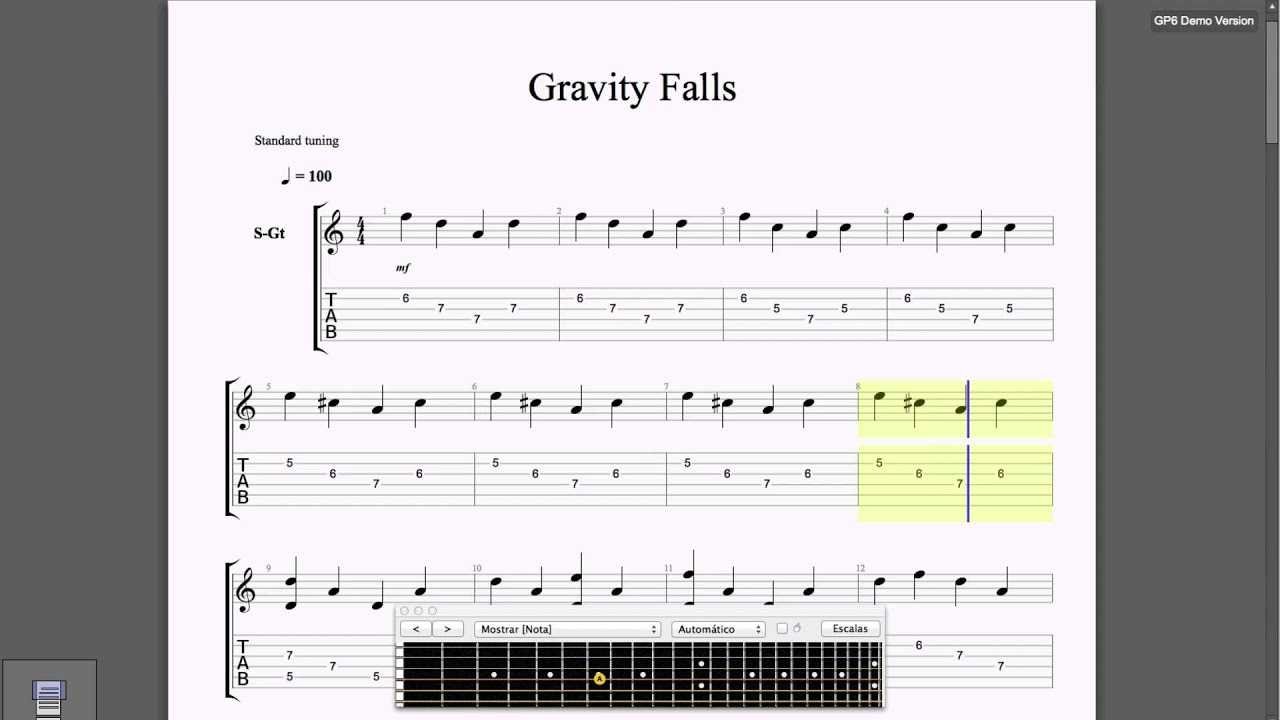 Табулатура Гравити Фолз на гитаре