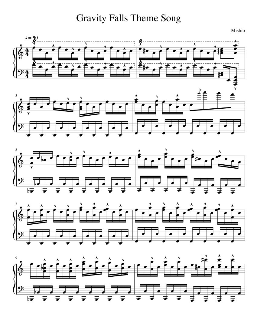 Гравити Фолз Ноты для фортепиано