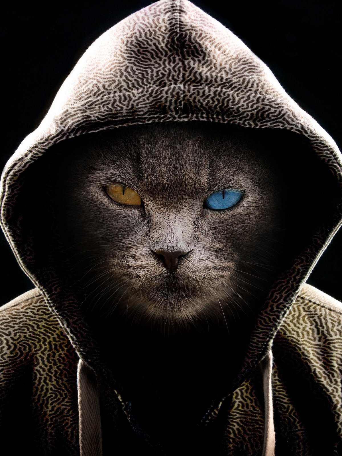 В капюшоне и маске
