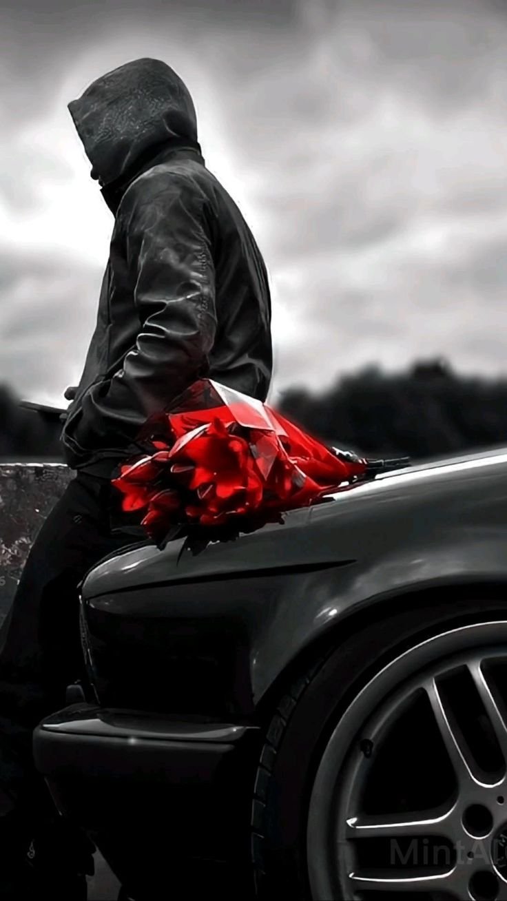 С цветами возле машины
