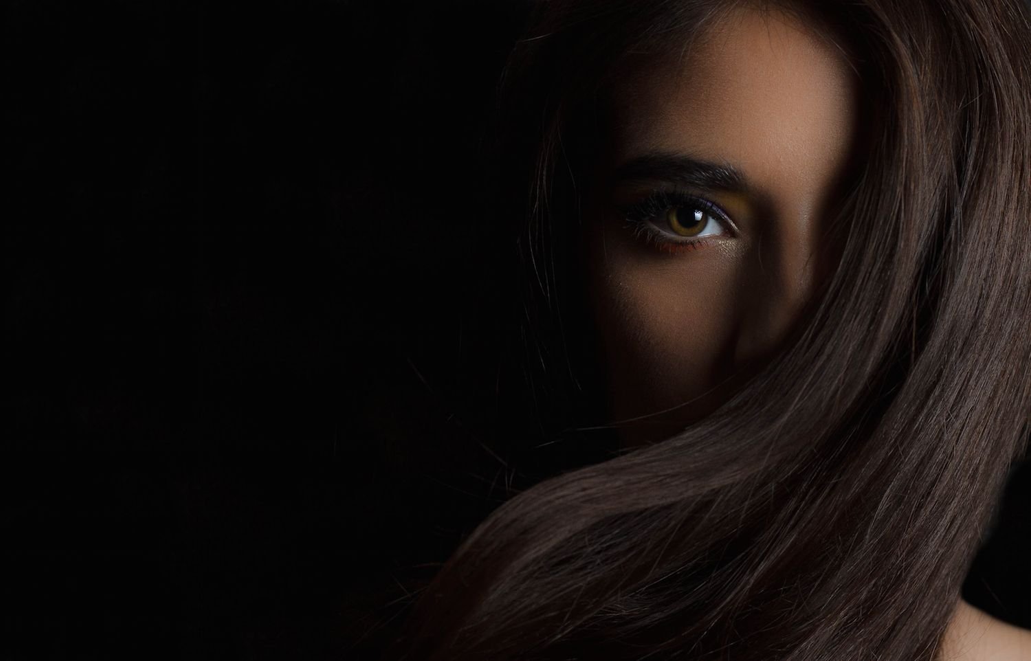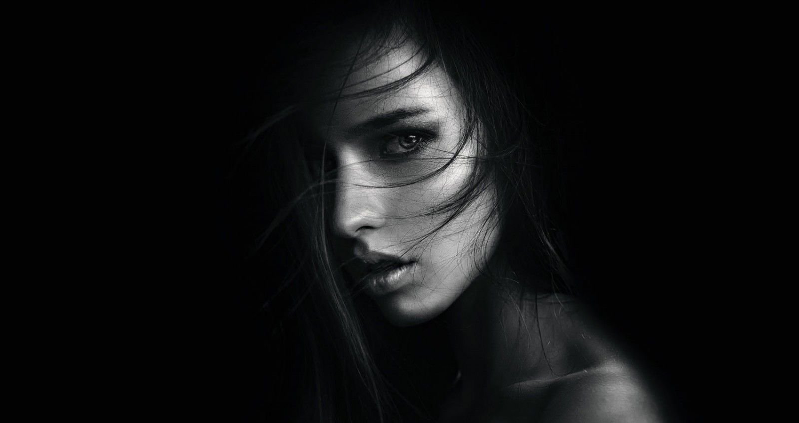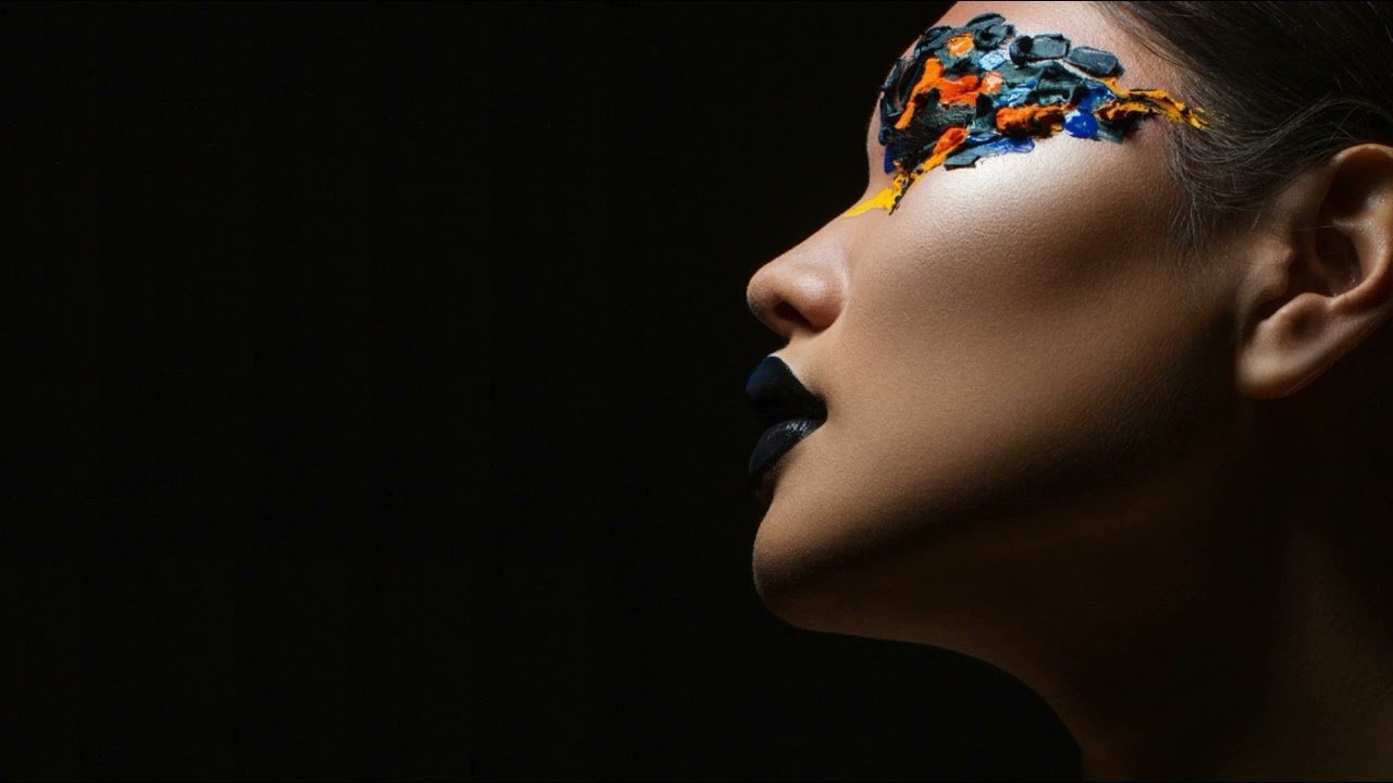 Лицо девушки на черном фоне