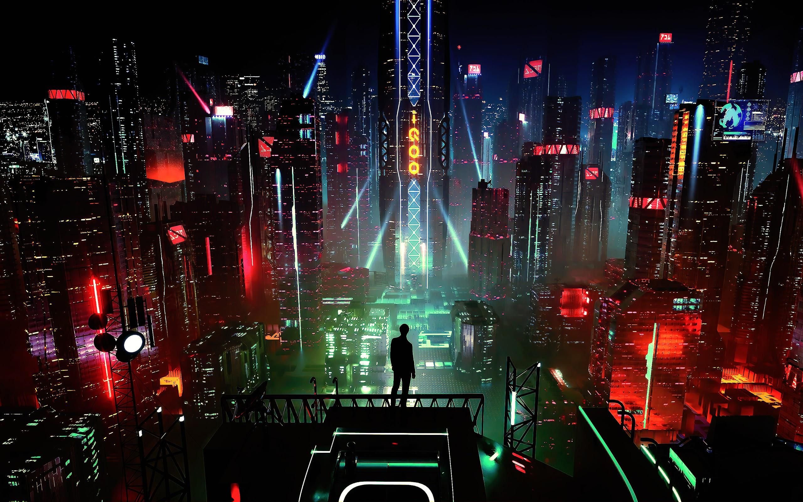 Cyberpunk 2077 арт неон город