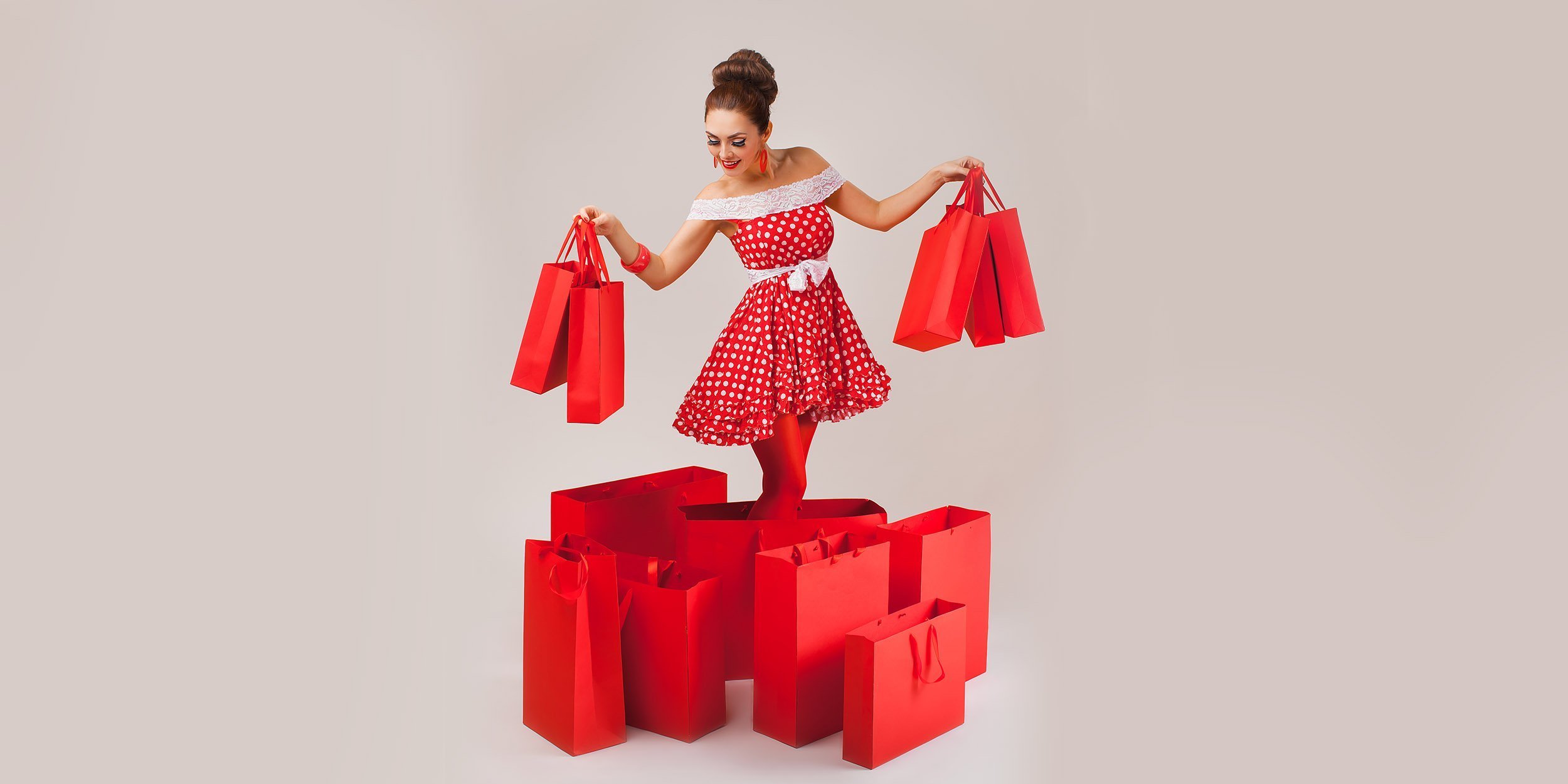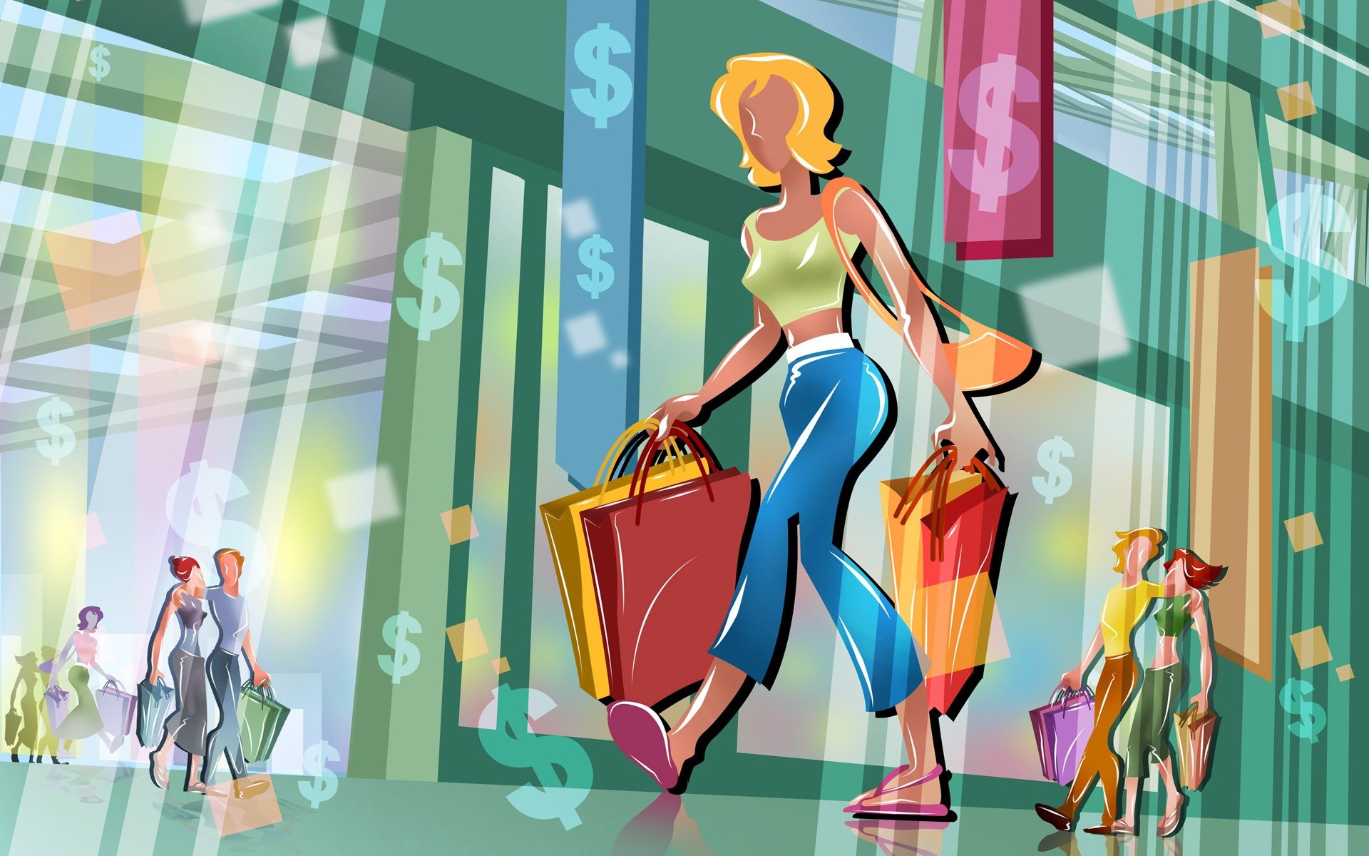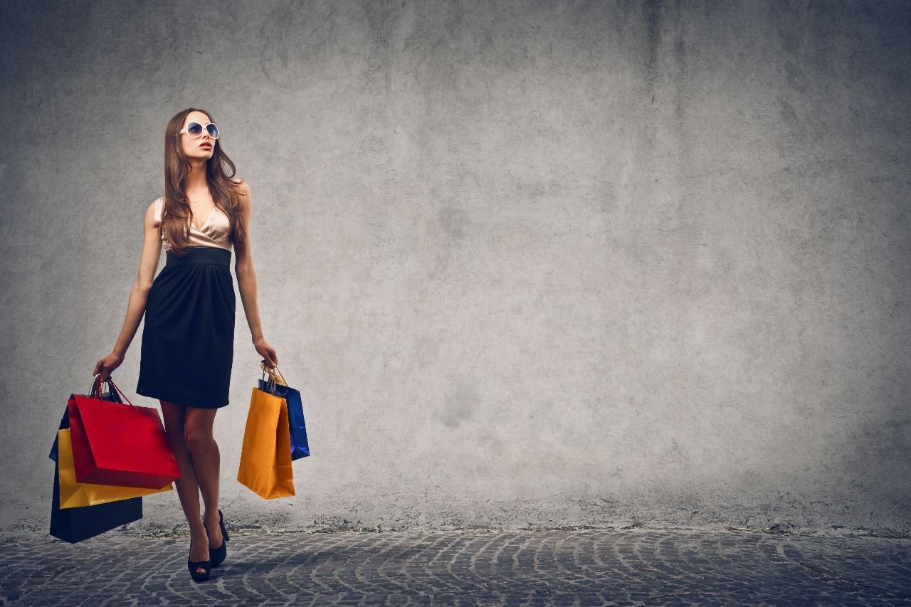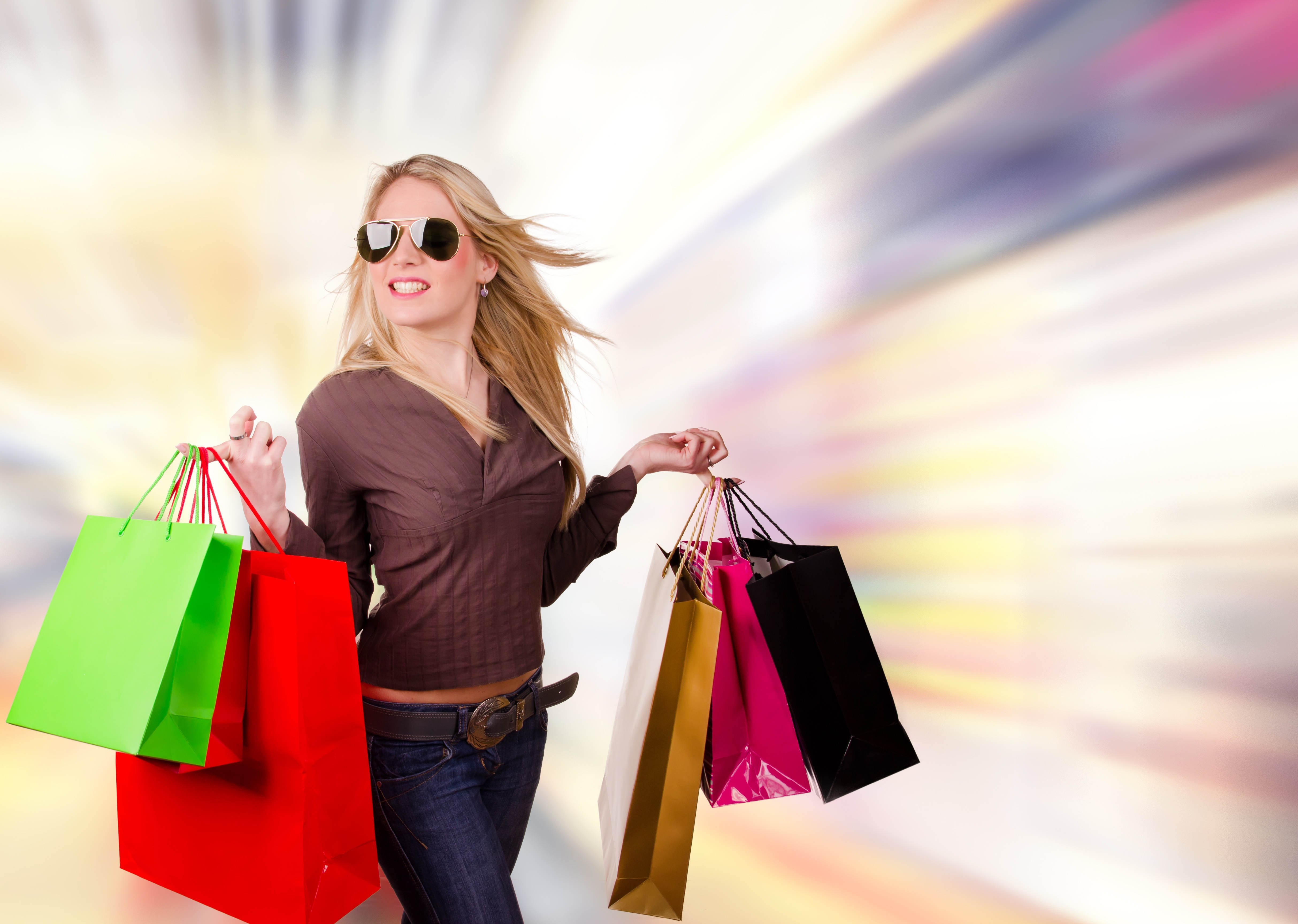 Яркая девушка с покупками