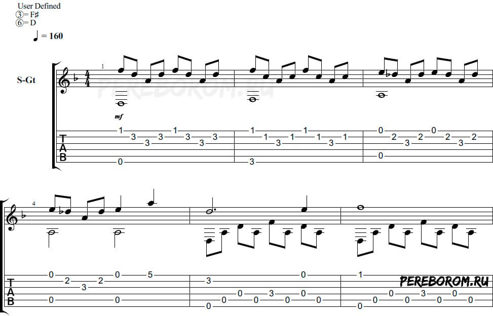 Табулатура Гравити Фолз на гитаре