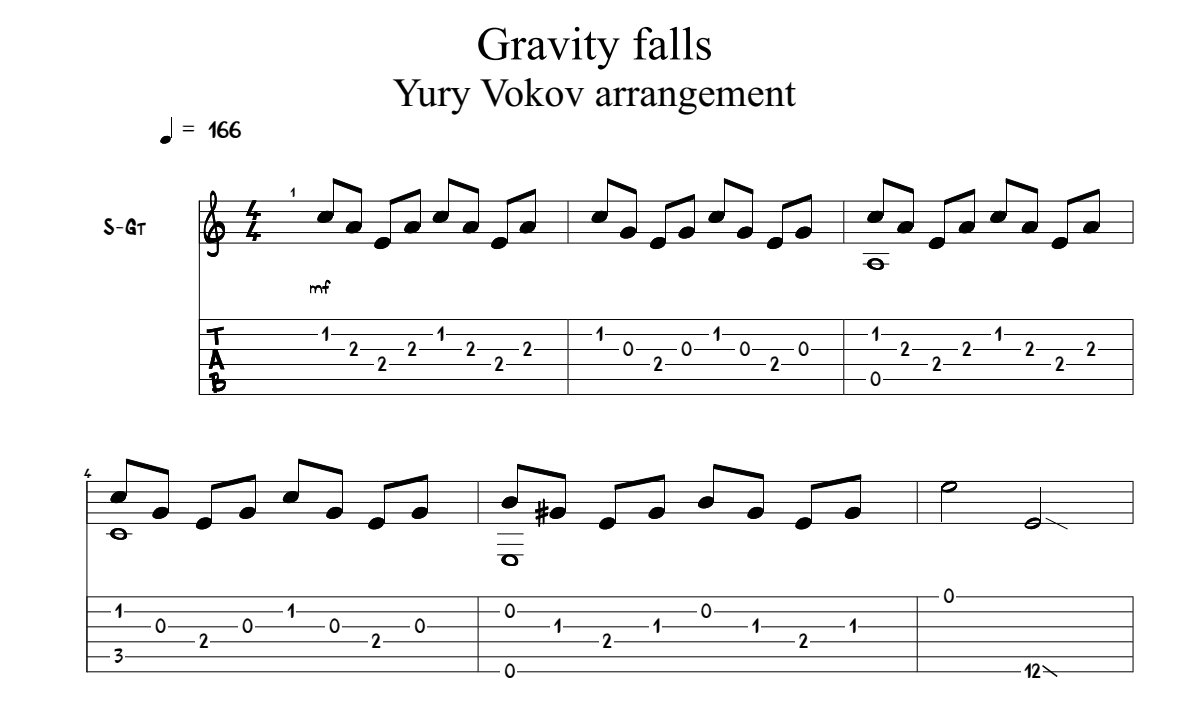 Ноты Гравити Фолз гитратра