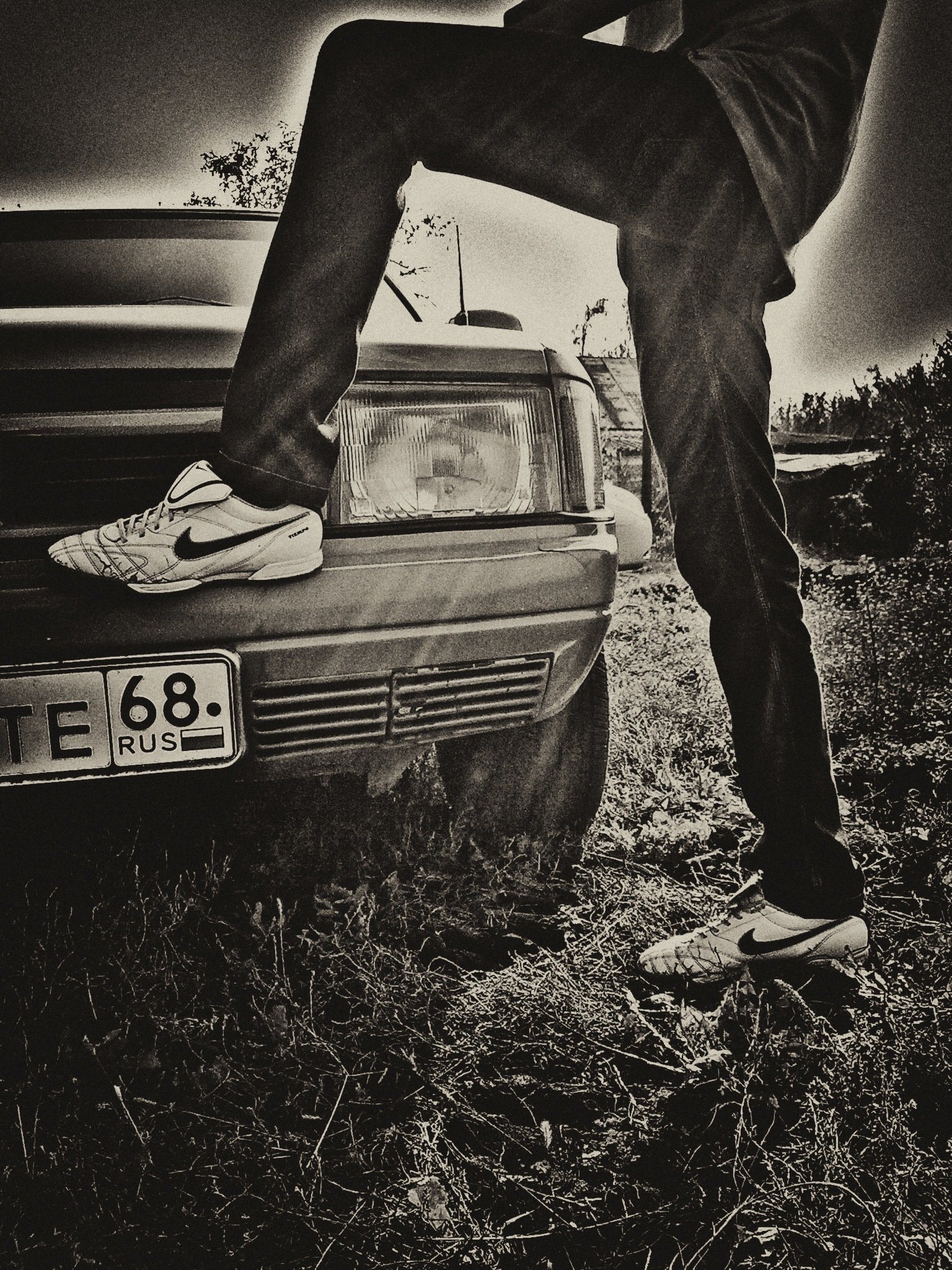 В капюшоне возле машины