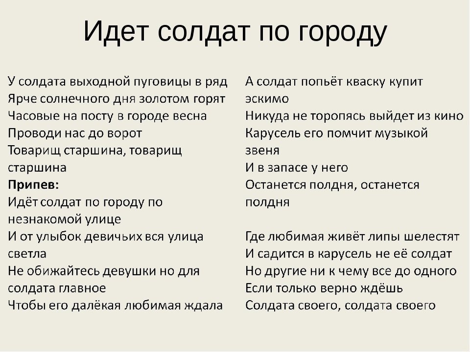Текст песни идёт солдат по городу