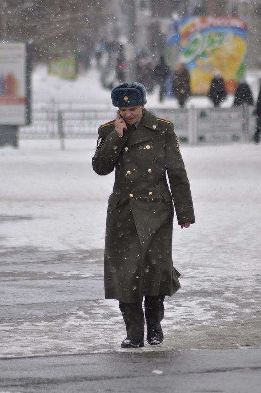 Ижет солдат по городу тект