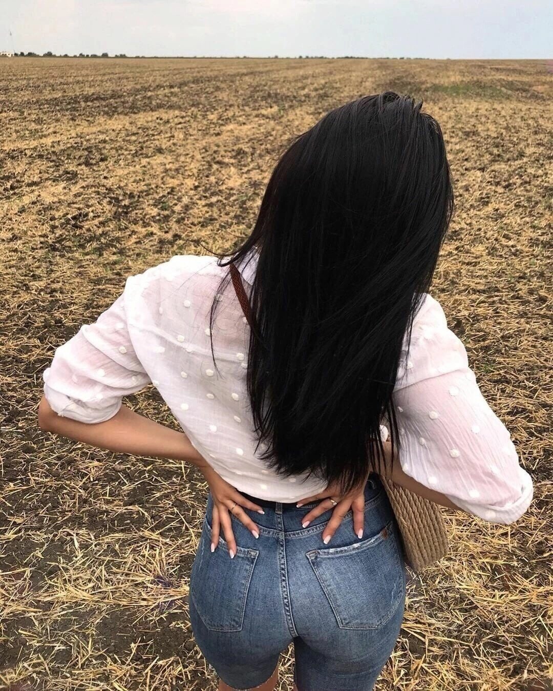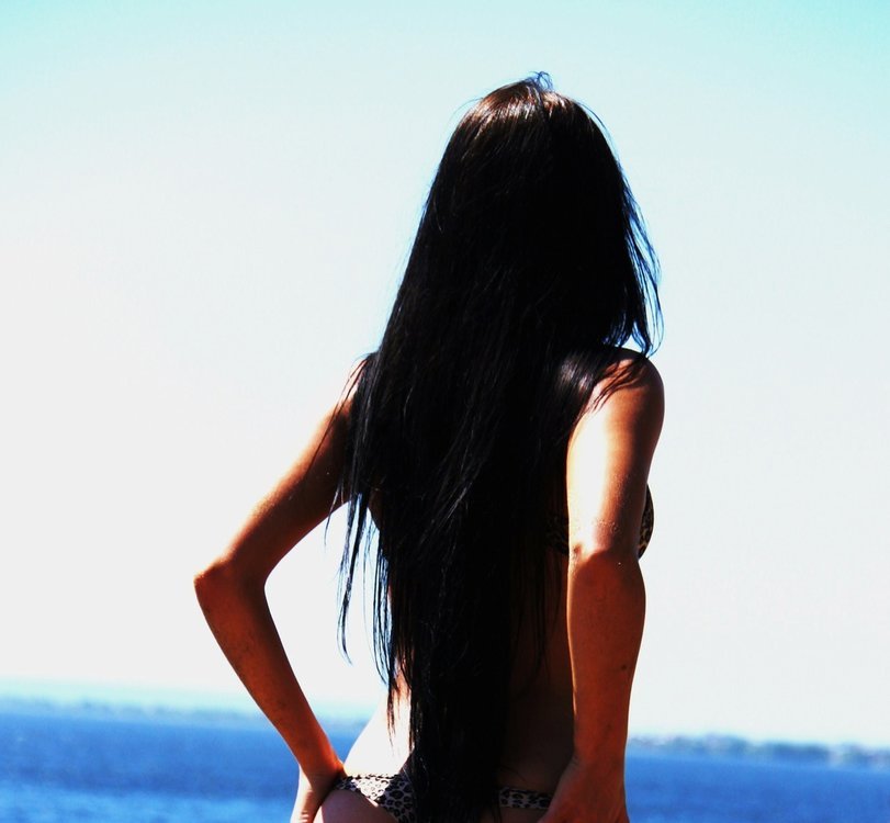 Брюнетка сзади длинные волосы