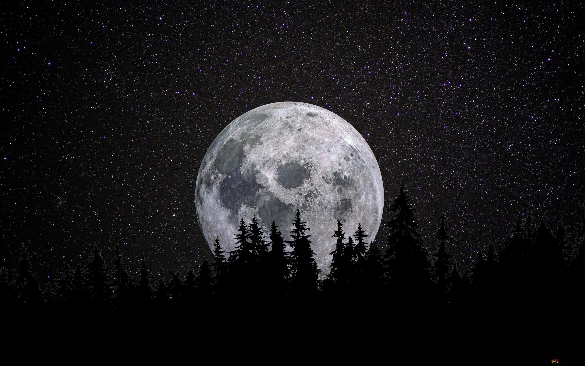 Ночь лес Луна
