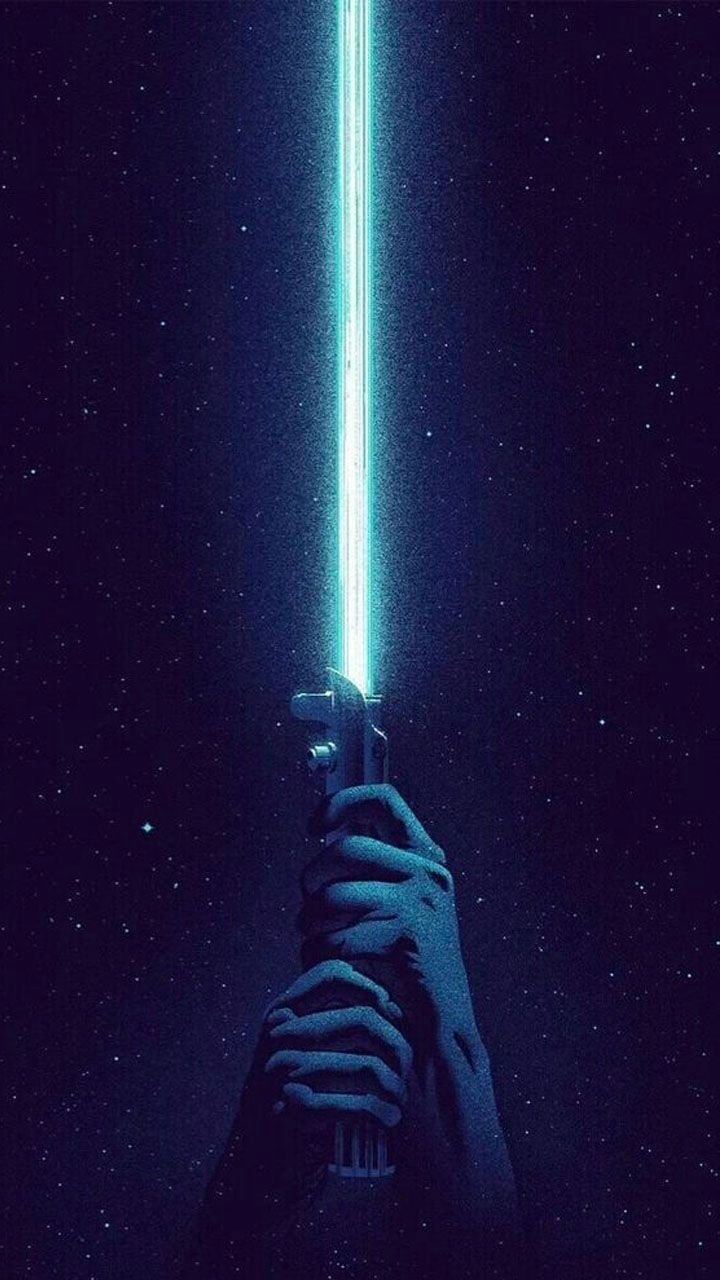 Синий световой меч с джедаем