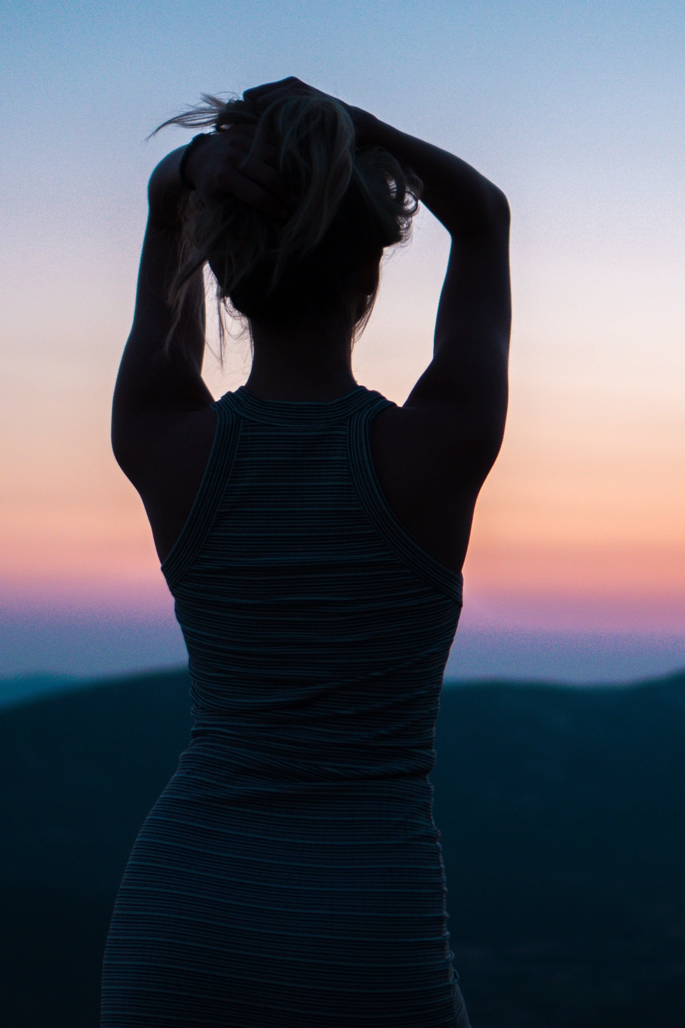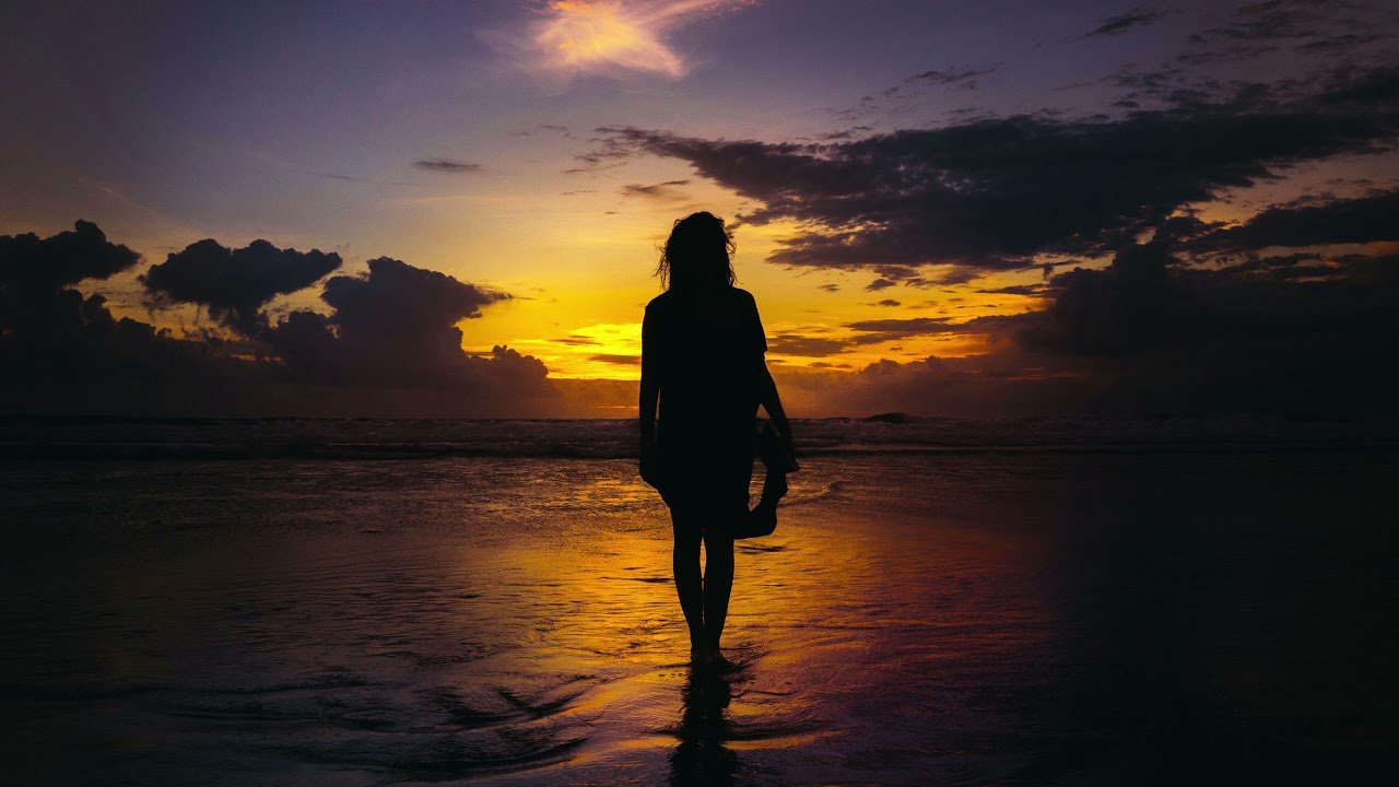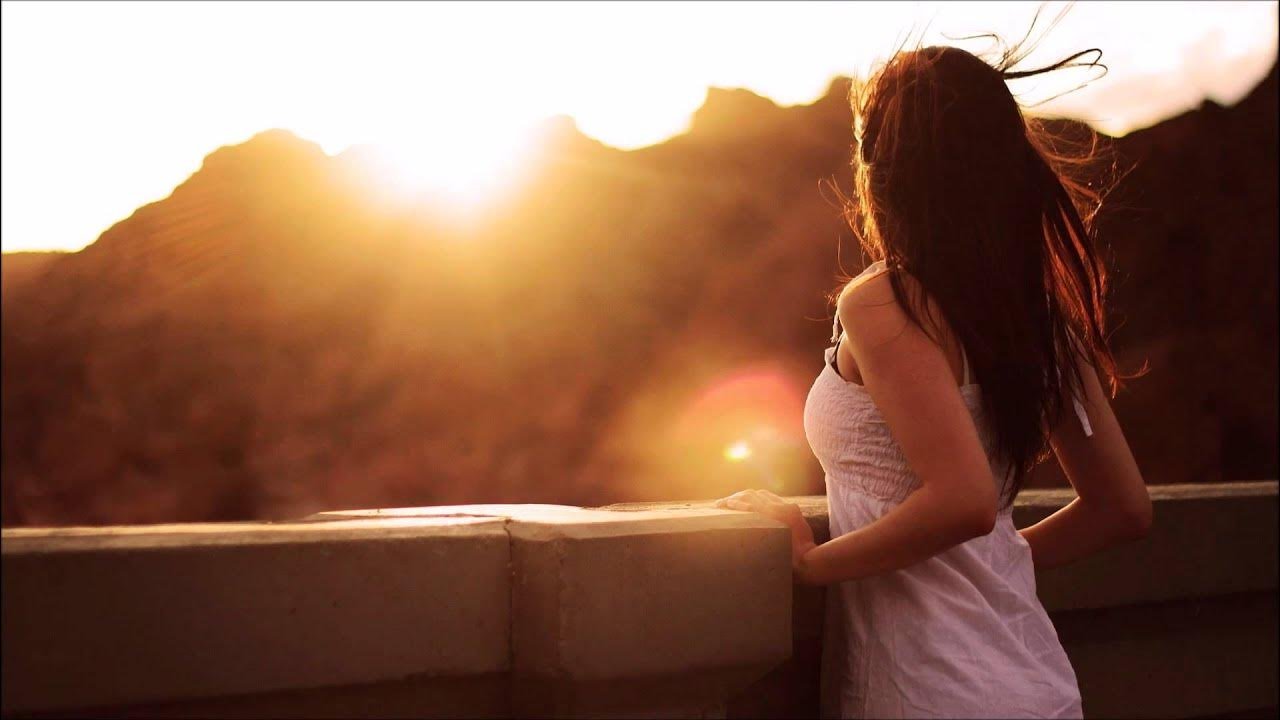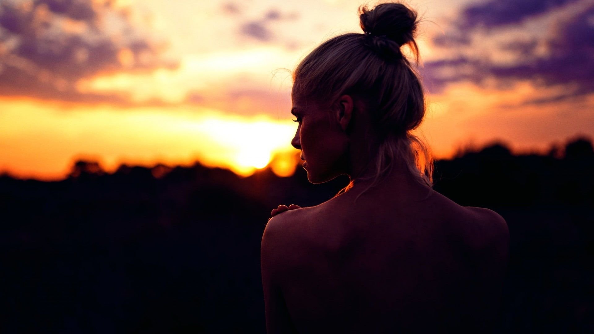 Девушка на закате спиной