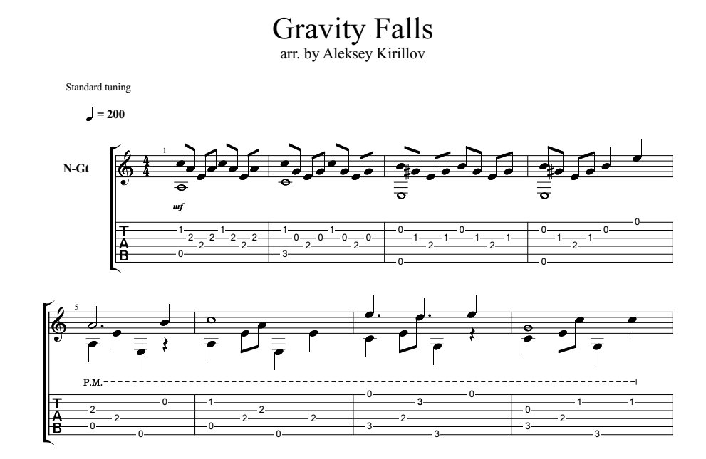 Ноты для гитары из Гравити Фолз