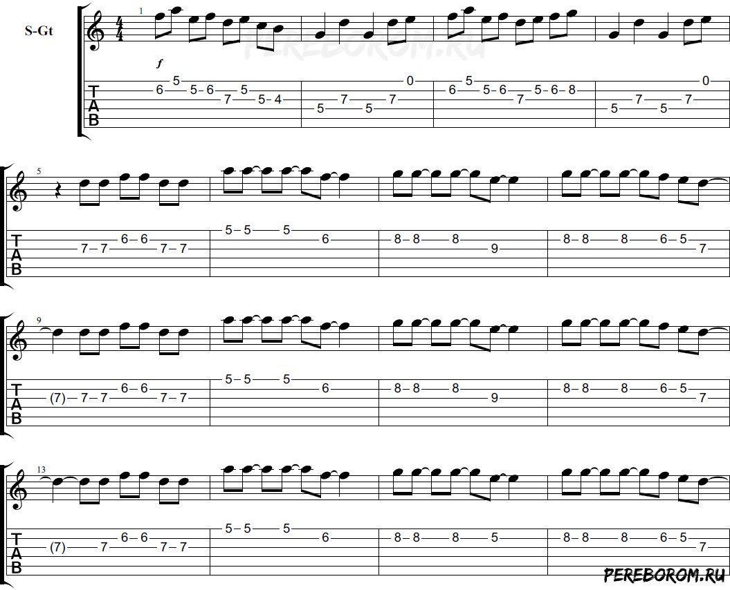 Табулатура Гравити Фолз на гитаре