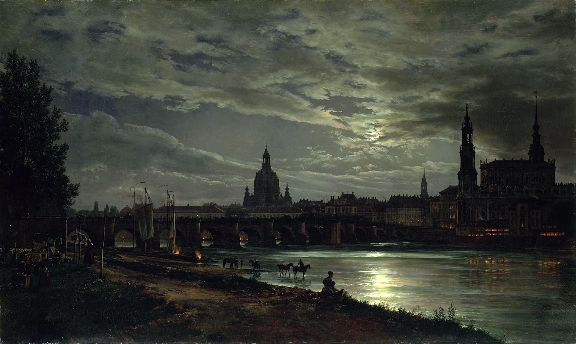 Юхан Кристиан даль. Вид на Дрезден в лунном свете 1839 год