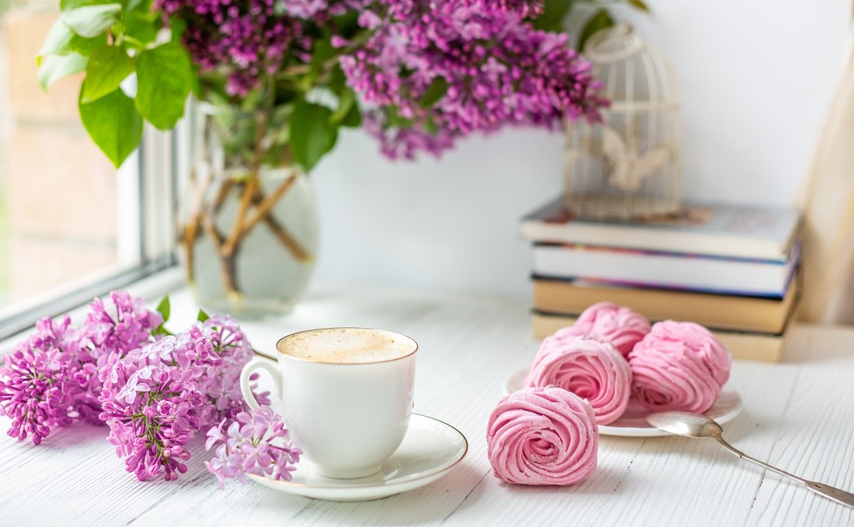 Утренний кофе с цветами