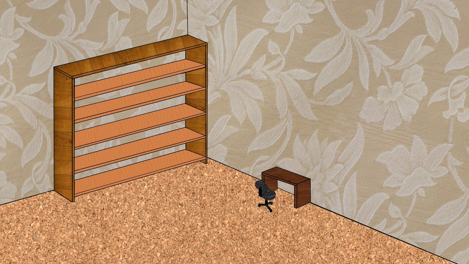 Комната с полками на рабочий стол