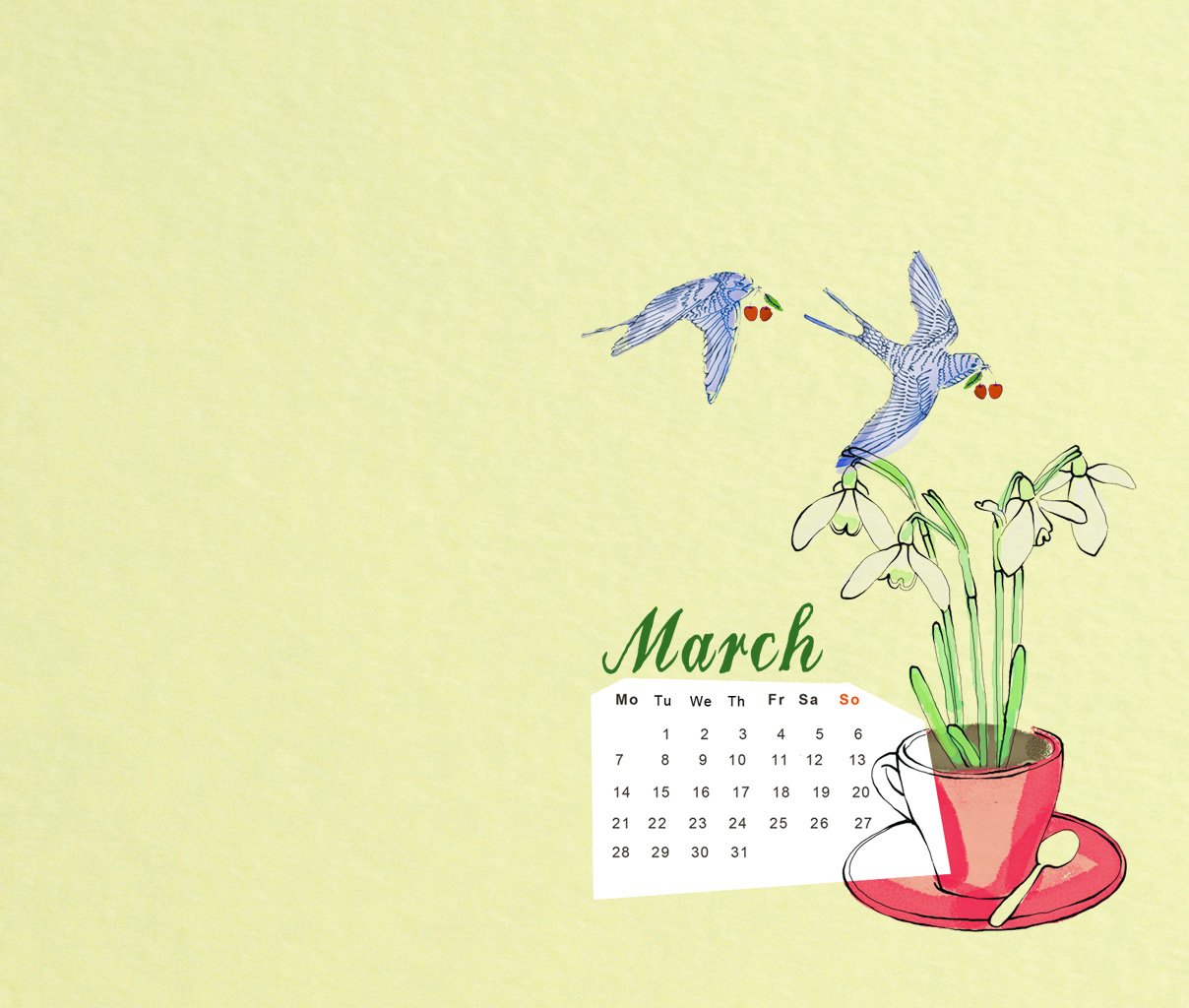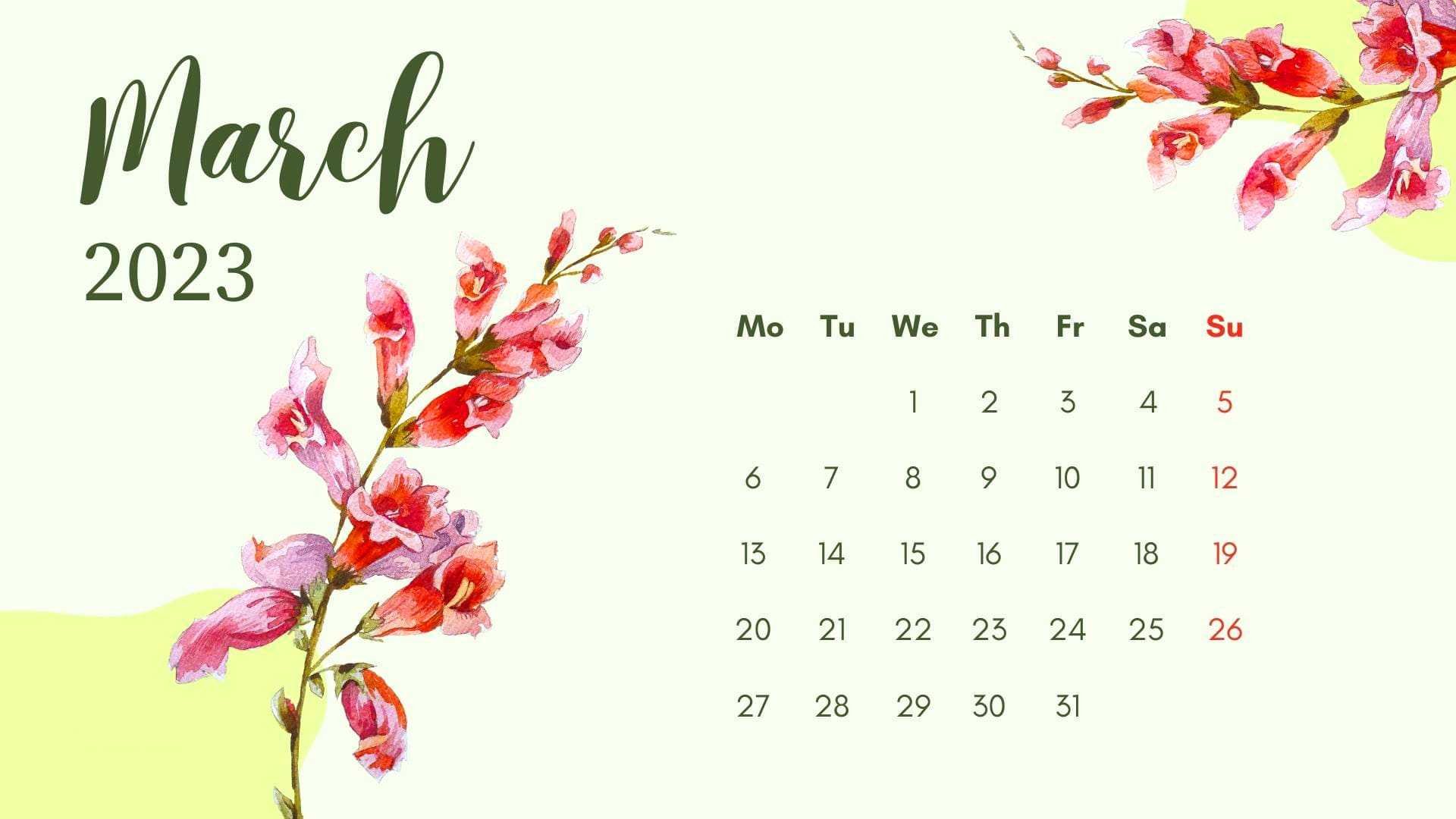 Обои календарь март